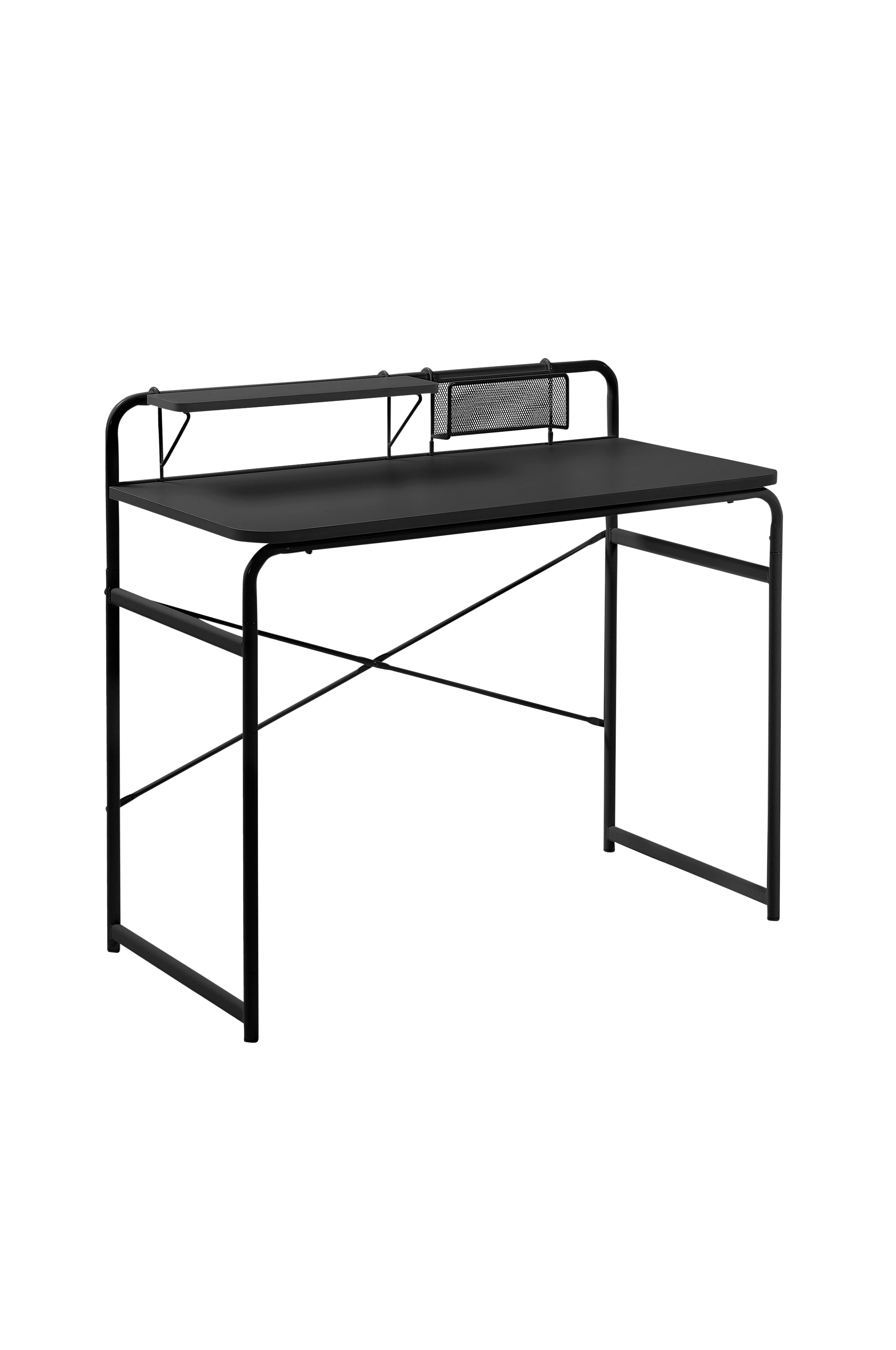 Foreman-kirjoituspöytä, jossa teräsrunko ja pöytälevy. Lisäksi hyllytaso kirjoitustarvikkeille ja lokero kirjekuorille tai viestilapuille. Leveys: 98 cm. Syvyys: 46 cm. Korkeus: 89 cm.