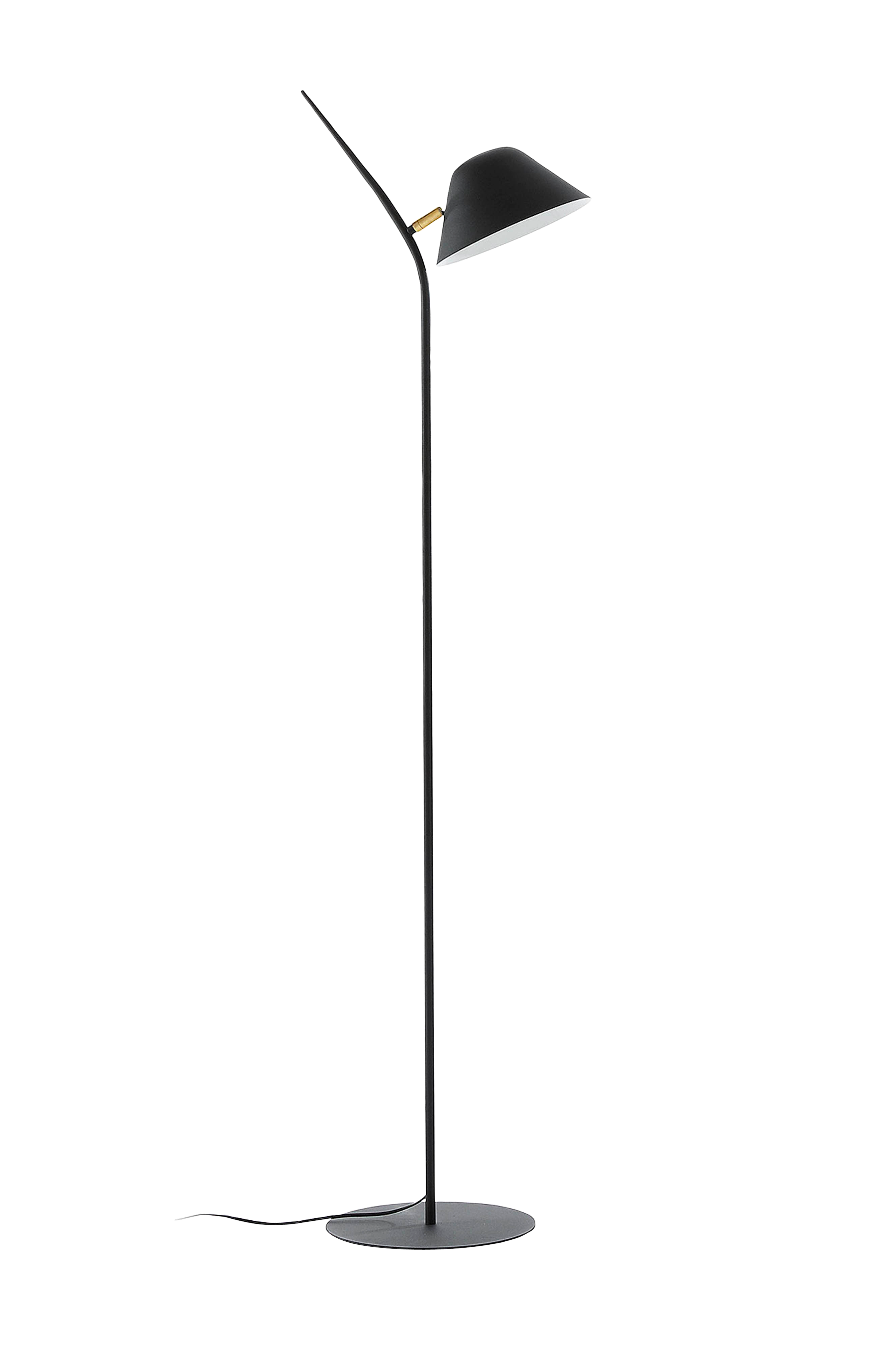 Metallinen lattiavalaisin, jossa nivelletty lampunvarjostin. Valaisimeen sopii valonlähde, jossa on E14-lampunkanta (ei mukana). Leveys 40 cm, syvyys 15,2 cm ja korkeus 152 cm. Lattiavalaisimen jalan halkaisija 28 cm. Valaisimen ja virtakytkimen välinen etäisyys on 40 cm.