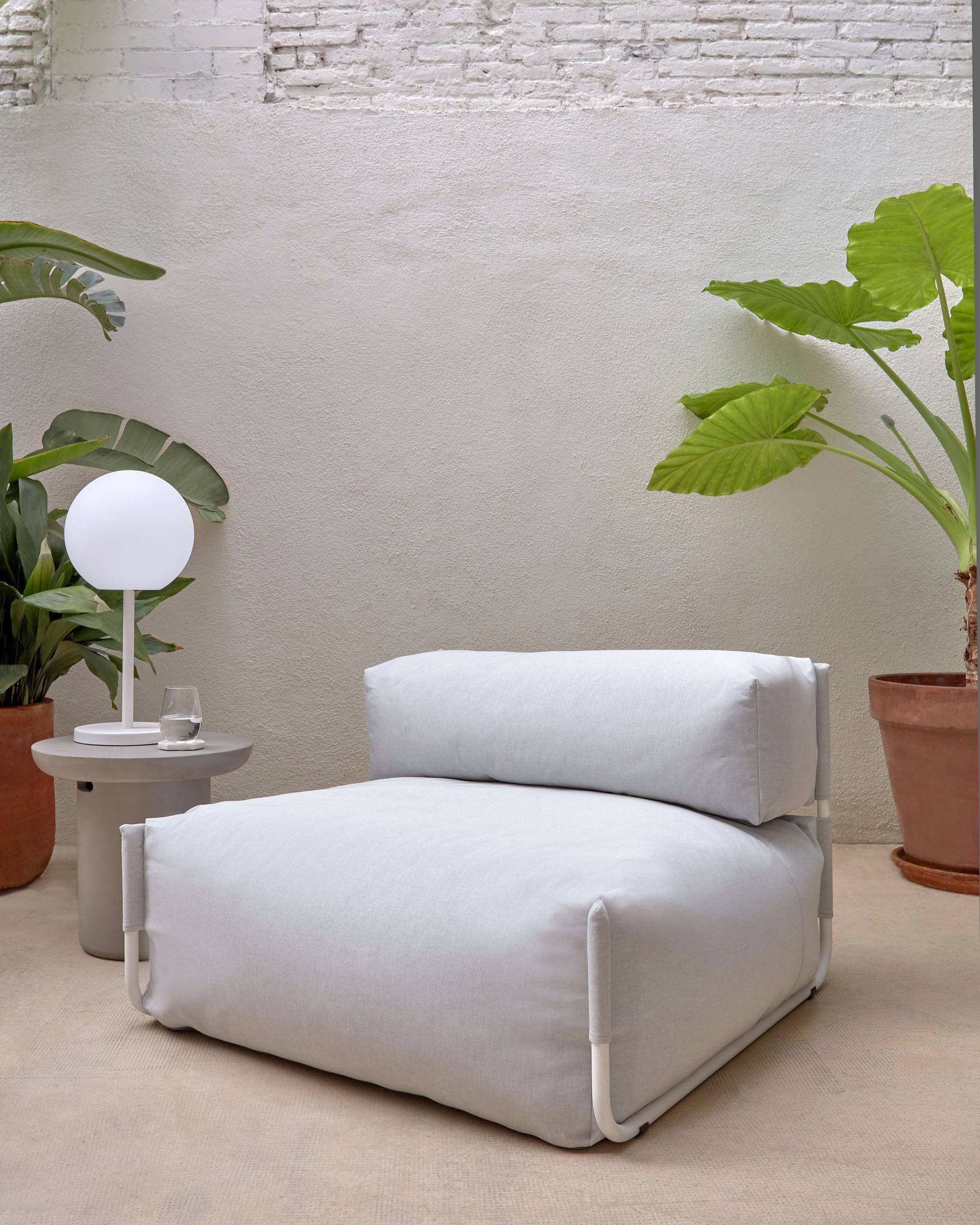 Square-loungetuoli - yhdistele Square-sarjan värejä ja moduuleja luodaksesi täydellisen chill-out-tilan. Tuote sopii täydellisesti ulkokäyttöön, ja siinä on paljon tyylikkäitä ja mukavuuden takaavia yksityiskohtia. Tuotteen on suunnitellut Kave Home -tiimin suunnittelija Jordi DÃaz.