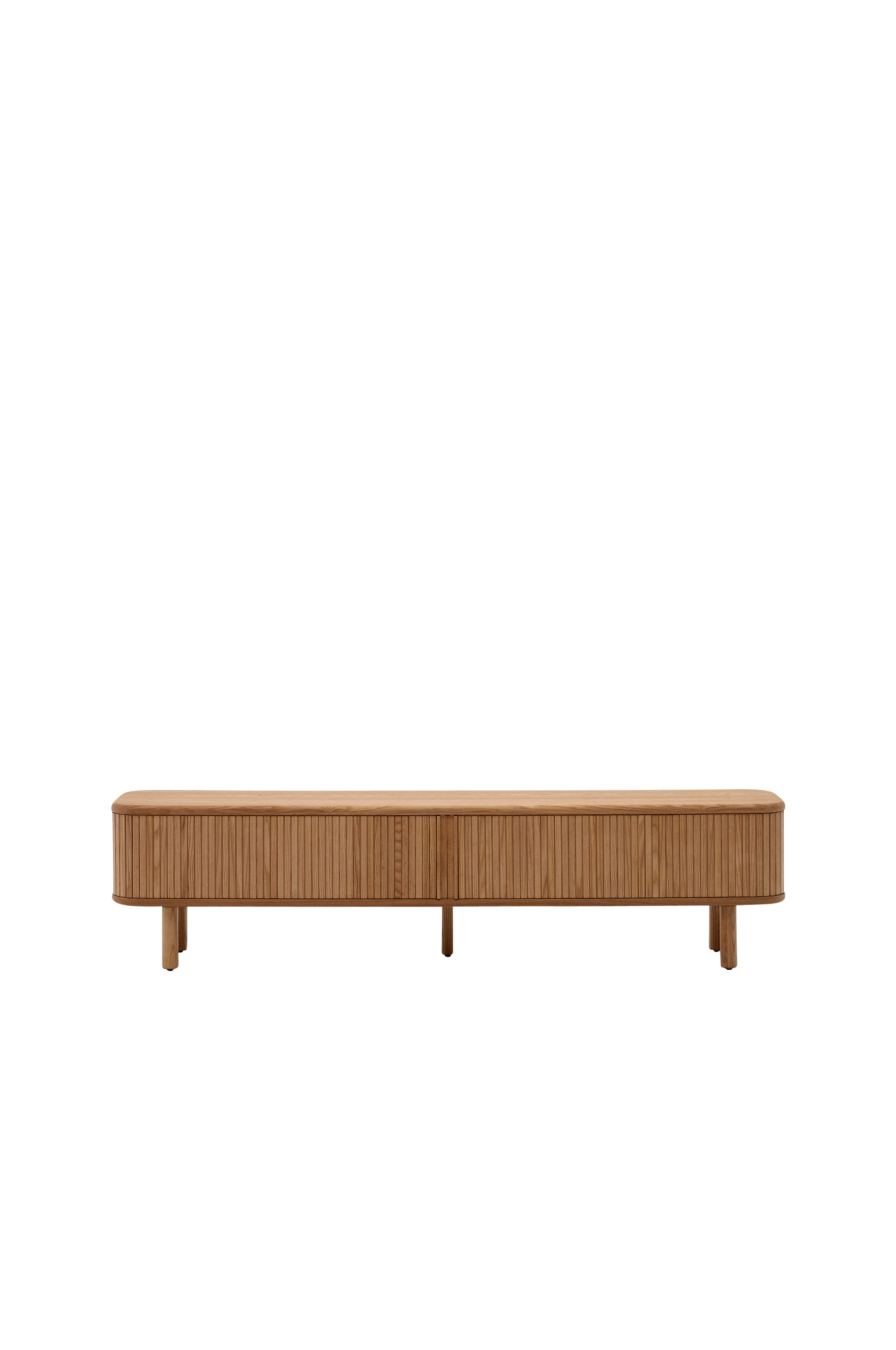 Kave home -tiimi on luonut mailen-malliston, jonka nykyaikainen muotoilu on pyöreitä muotoja, joka on valmistettu tuhkaviilusta ja puiset liukuovet, jotka tekevät siitä aidon tähden. Tuotteen leveys: 200cm. Tuotteen syvyys: 40cm. Tuotteen korkeus: 50cm.