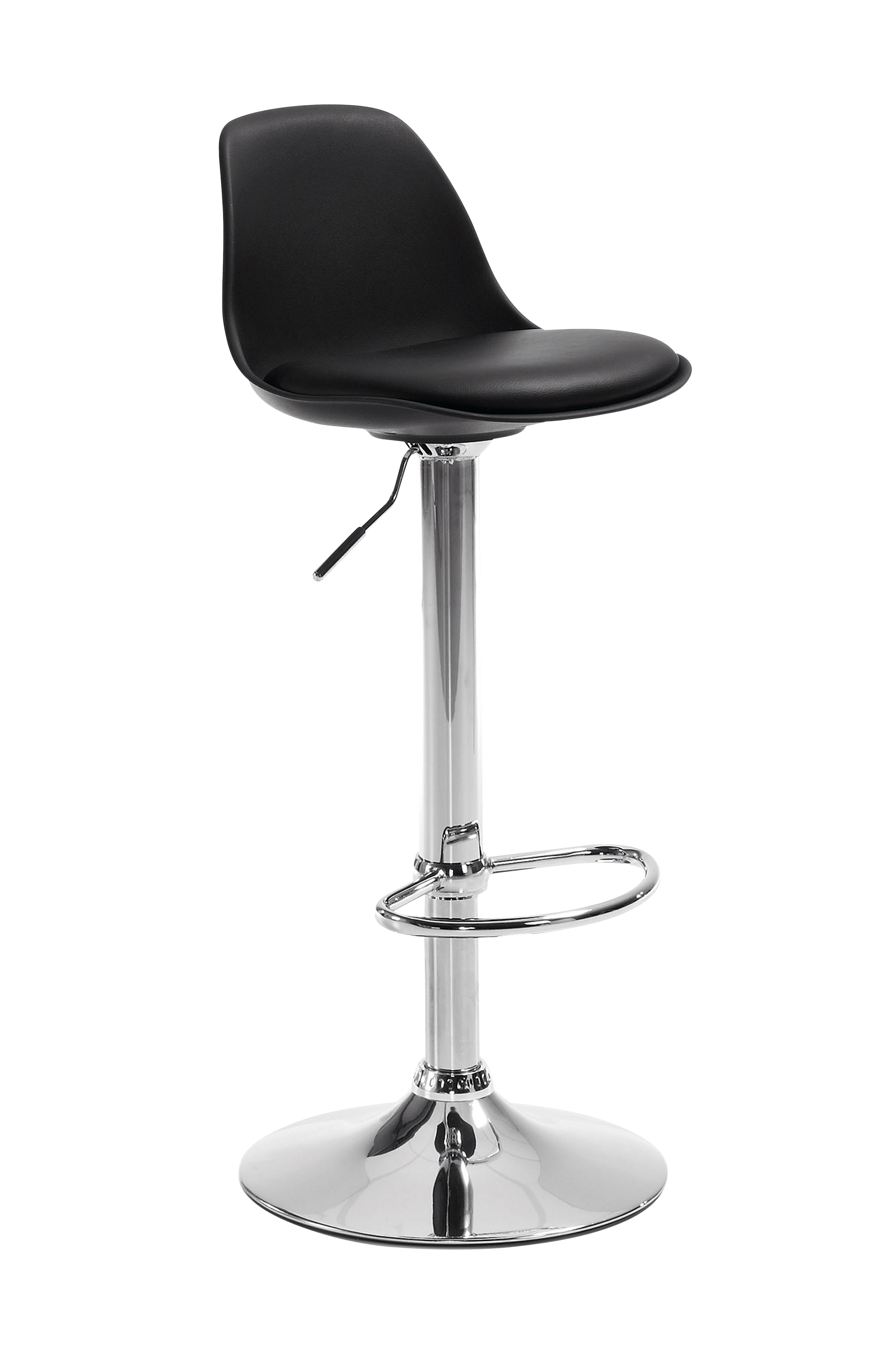 Baarituolin selkänoja mustaa polypropeenia, krominväriset jalat. Pyörivä malli, jossa säädettävä korkeus. 2/pakk.