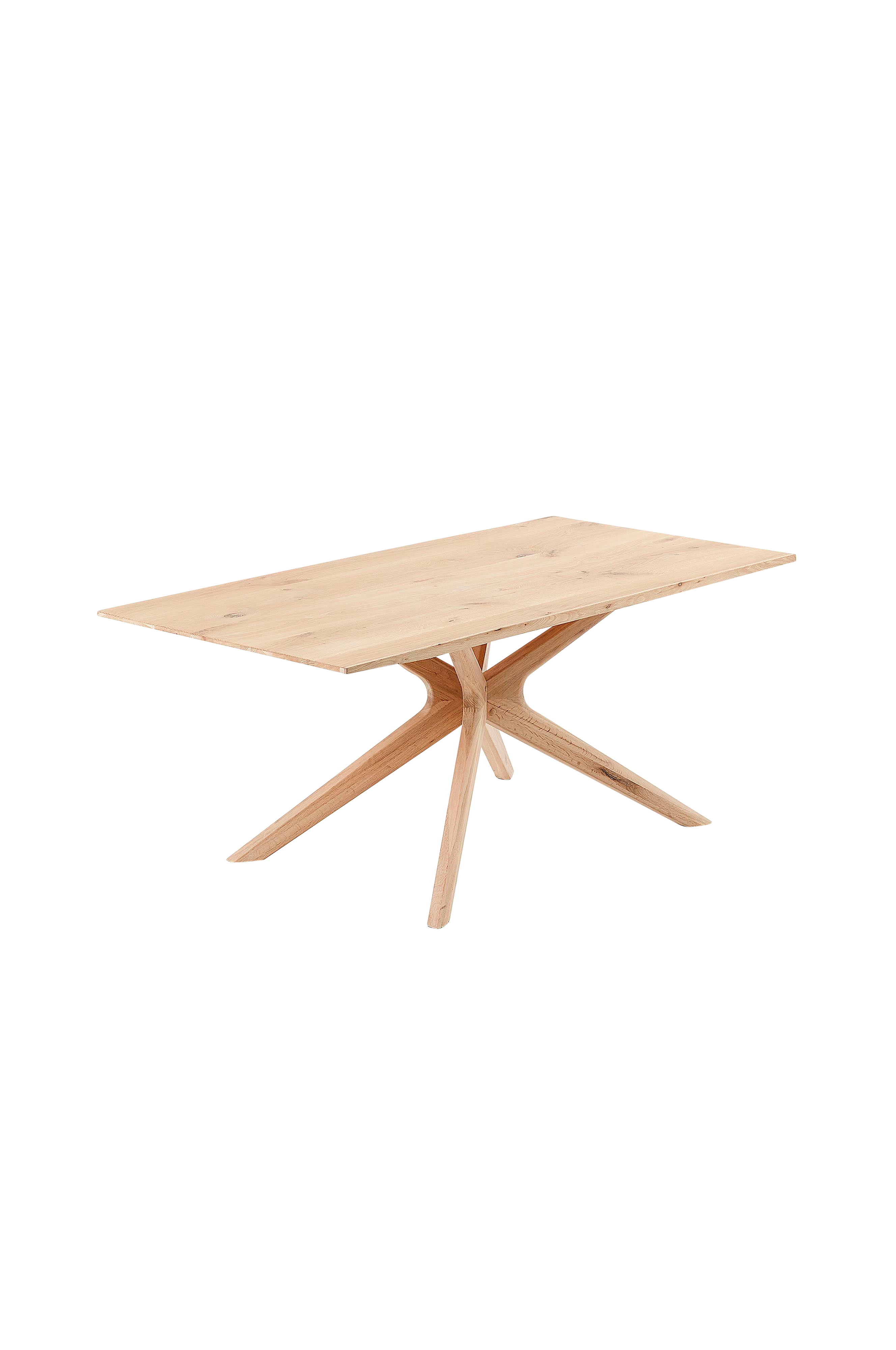 Pöytä massiivitammea, jossa valkopesty viimeistely. Korkeus: 76 cm. Leveys: 90 cm. Syvyys: 180 cm. Korkeus: 76 cm.