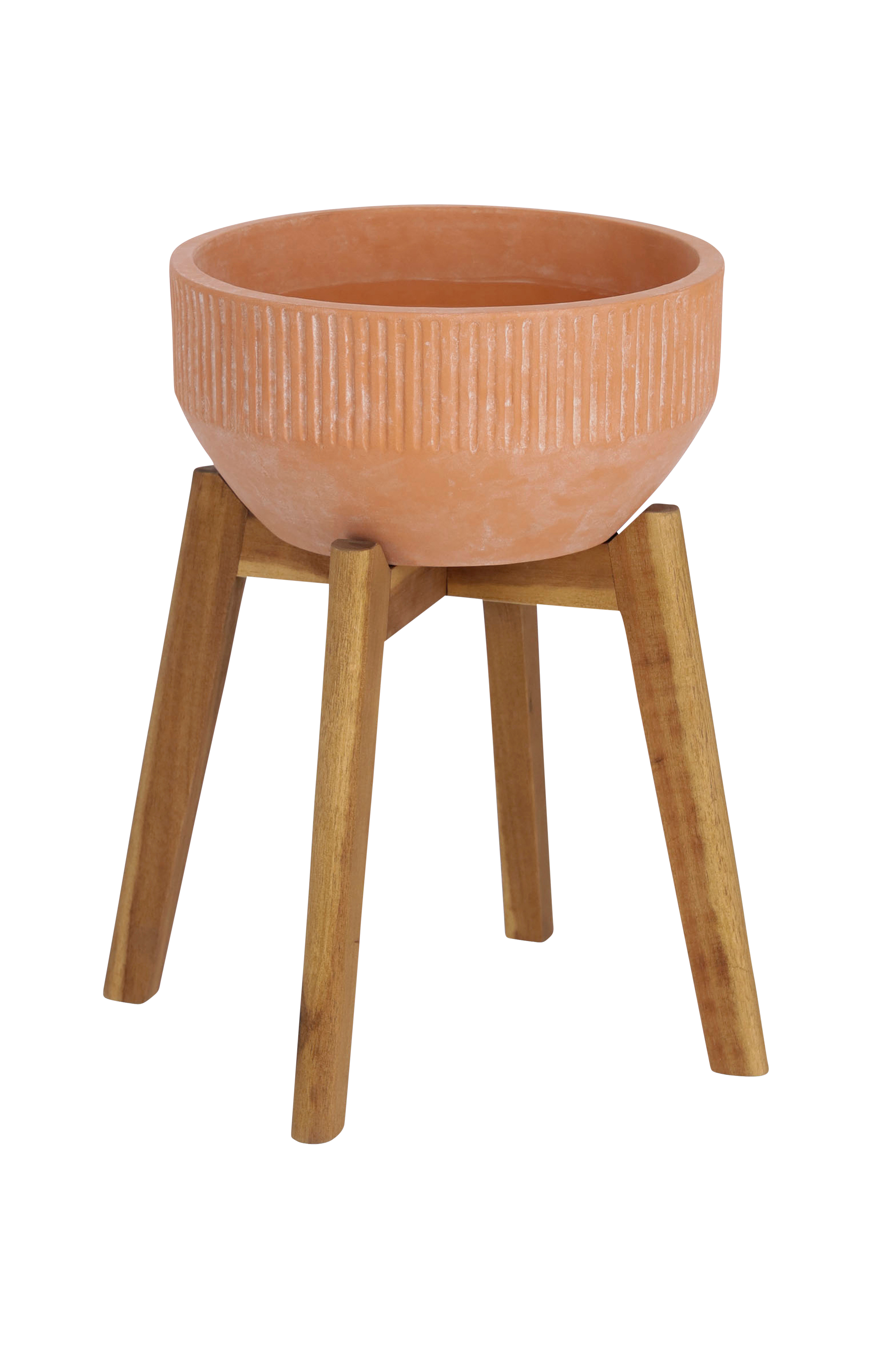 Subject-terrakottaruukku. Ruukun halkaisija 28 cm. Puujalat.