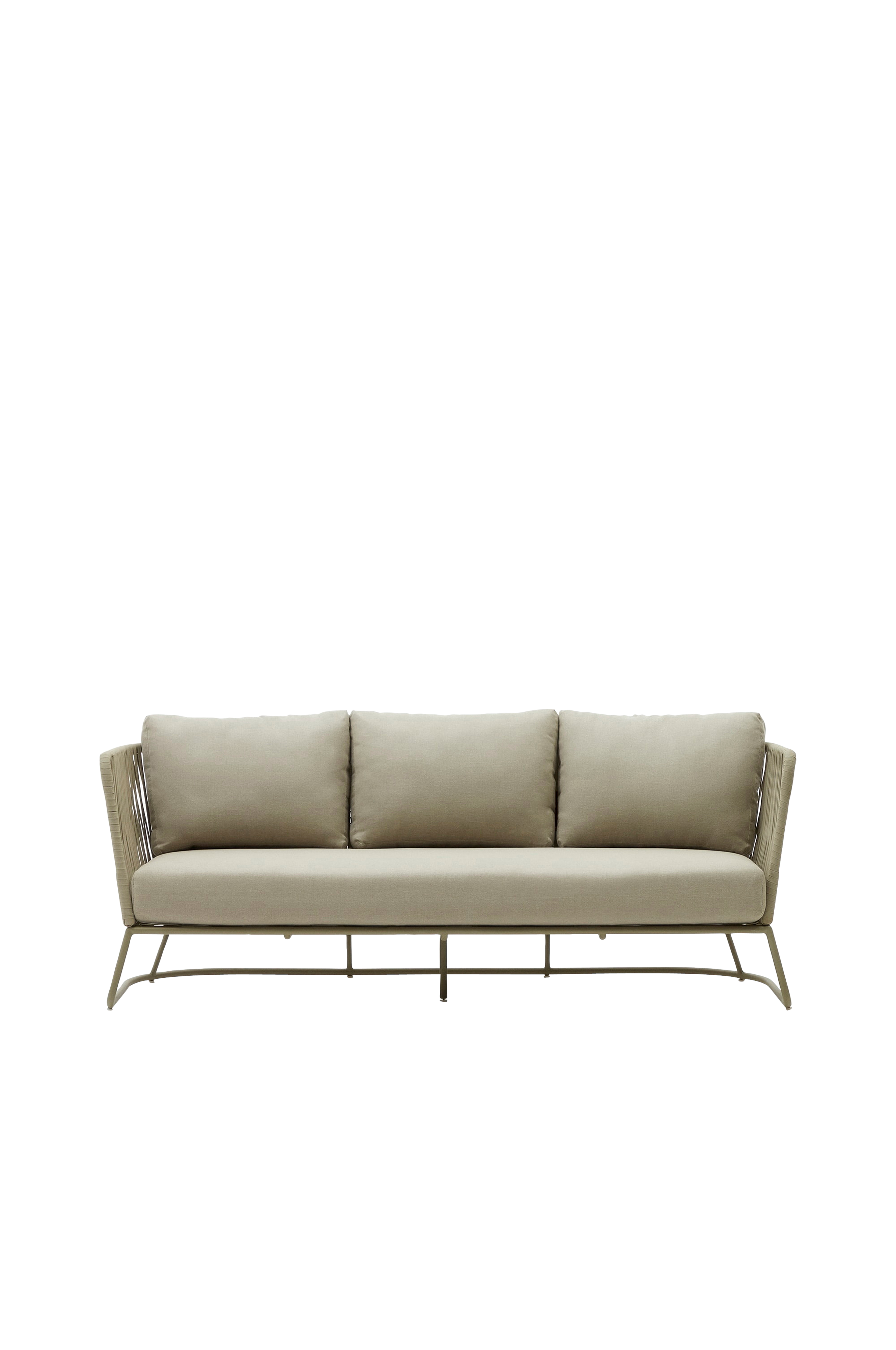 Kave Home Saconca 3-istuttava ulkosohva narusta ja vihreästä galvanoidusta teräksestä, 189 cm.