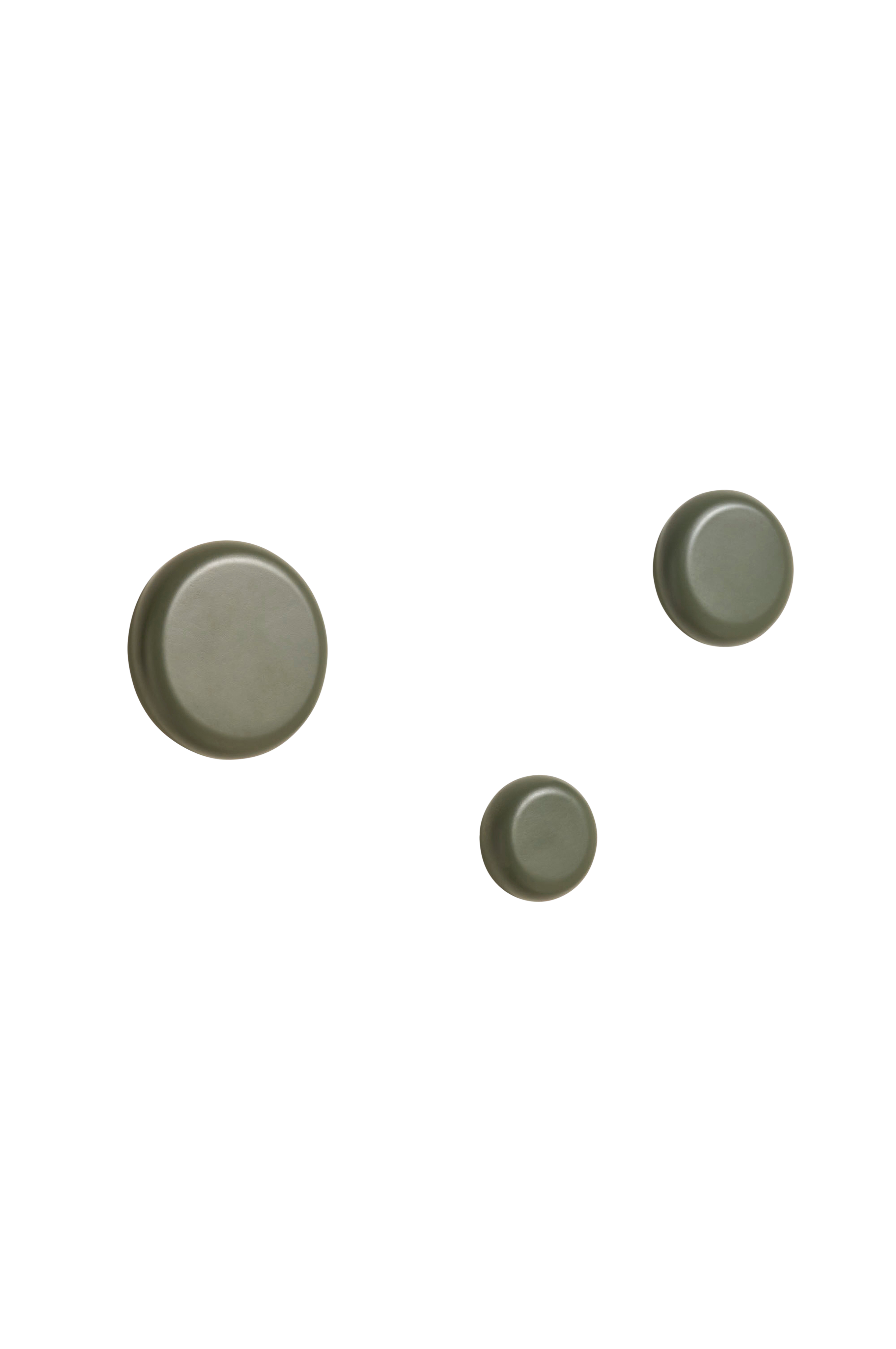 Nadue-setti, jossa kolme pyöreää ja erikokoista seinäripustinta massiivipyökkiä. Kave Home -tiimin suunnittelemia orgaanisia muotoja, jotka on paikallisesti valmistettu. Halkaisijat n. 10, 8 ja 6 cm.