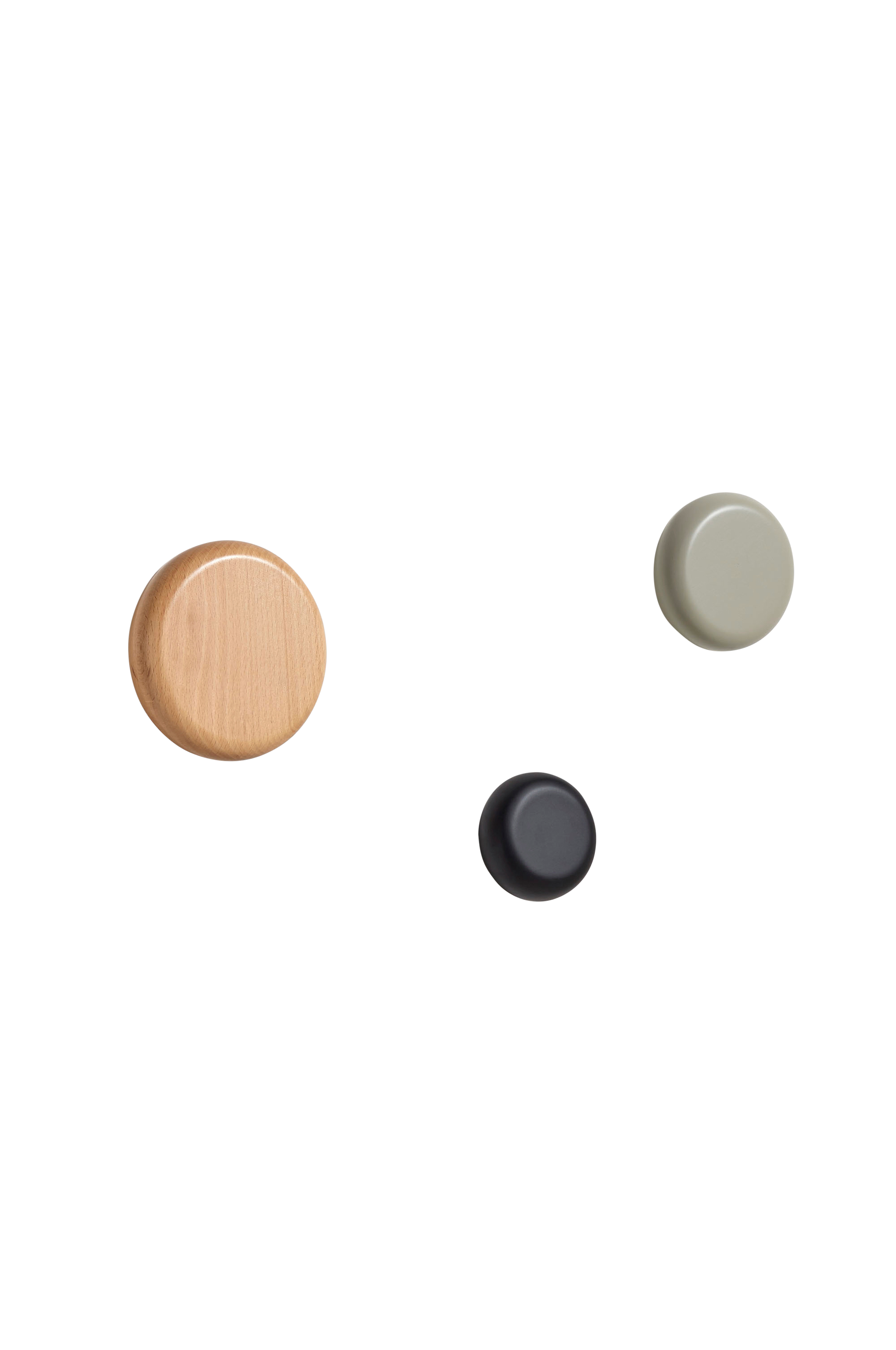 Nadue-setti, jossa kolme pyöreää ja erikokoista seinäripustinta massiivipyökkiä. Kave Home -tiimin suunnittelemia orgaanisia muotoja, jotka on paikallisesti valmistettu. Halkaisijat n. 10, 8 ja 6 cm.