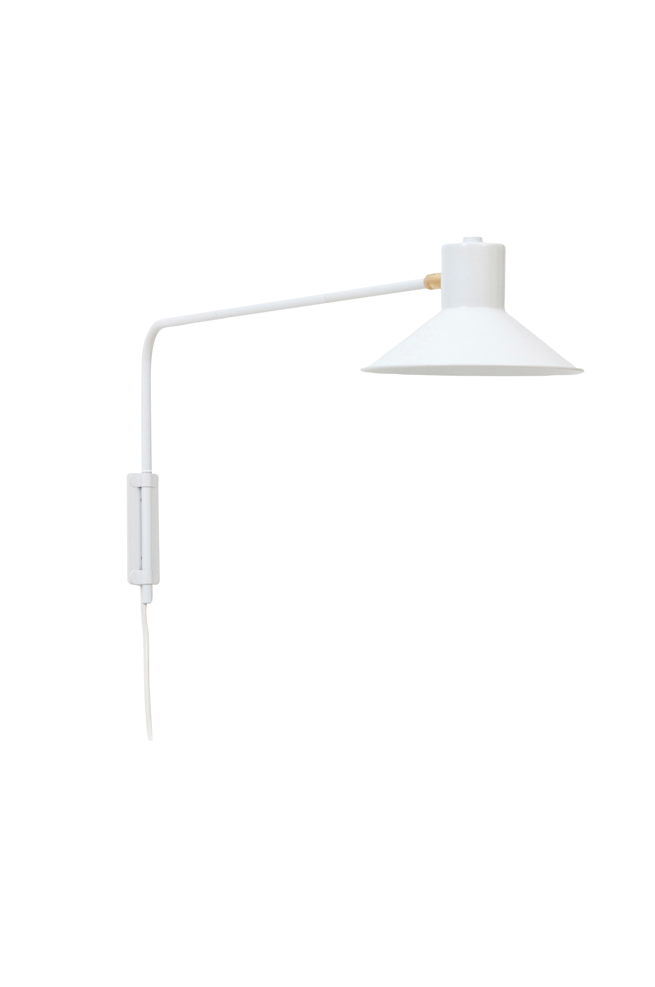 Nivelletty seinävalaisin, jossa metallinen varsi ja lampunvarjostin. Yksityiskohdat messinkiä. Valaisimeen sopii valonlähde, jossa on E14-lampunkanta (ei mukana). Leveys 20 cm, syvyys 86 cm ja korkeus 33 cm. Valaisimen ja virtakytkimen välinen etäisyys on 70 cm.