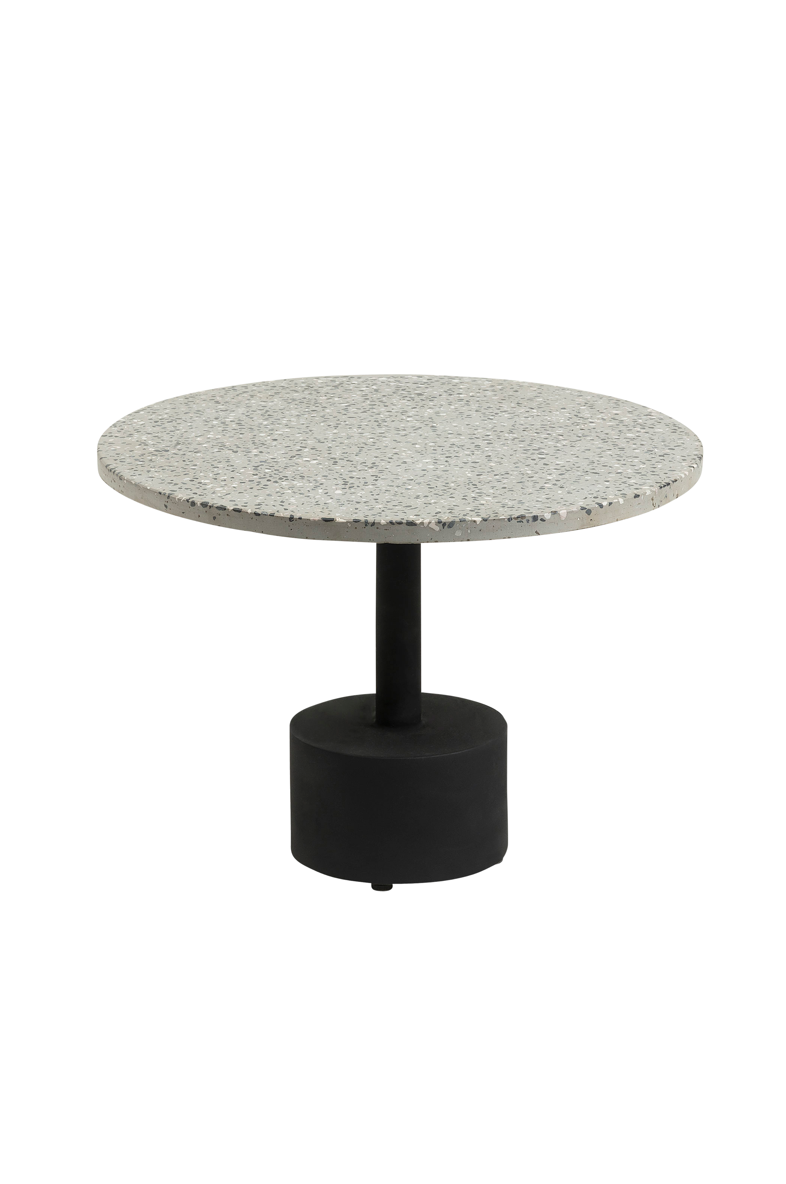 Sivupöytä, jossa on Terrazzo-pöytälevy ja metallijalat. Leveys: 55 cm. Syvyys: 55 cm. Korkeus: 40 cm.