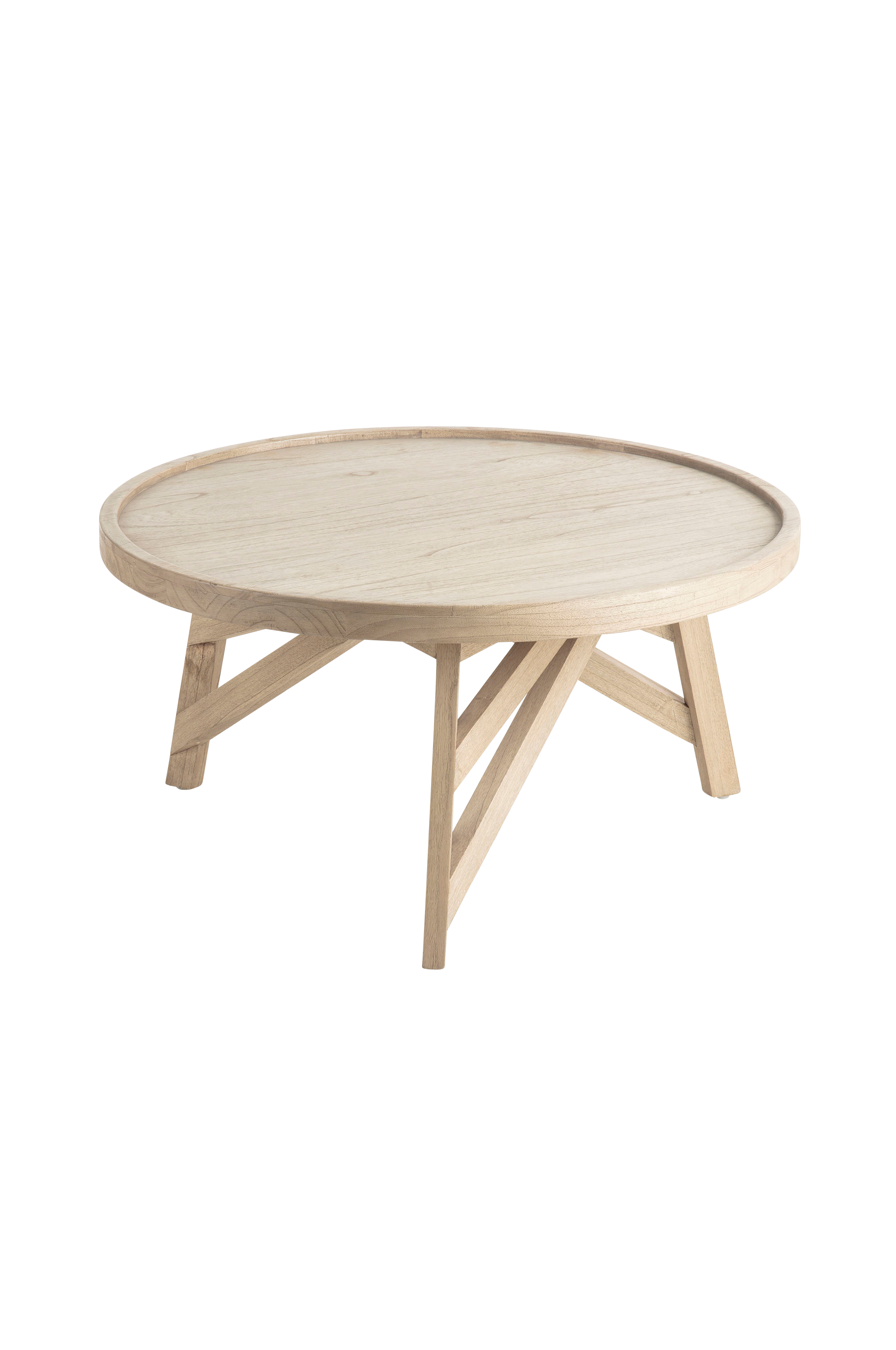 Pyöreä sohvapöytä meeliaa. Harmaaksi käsitelty pinta.