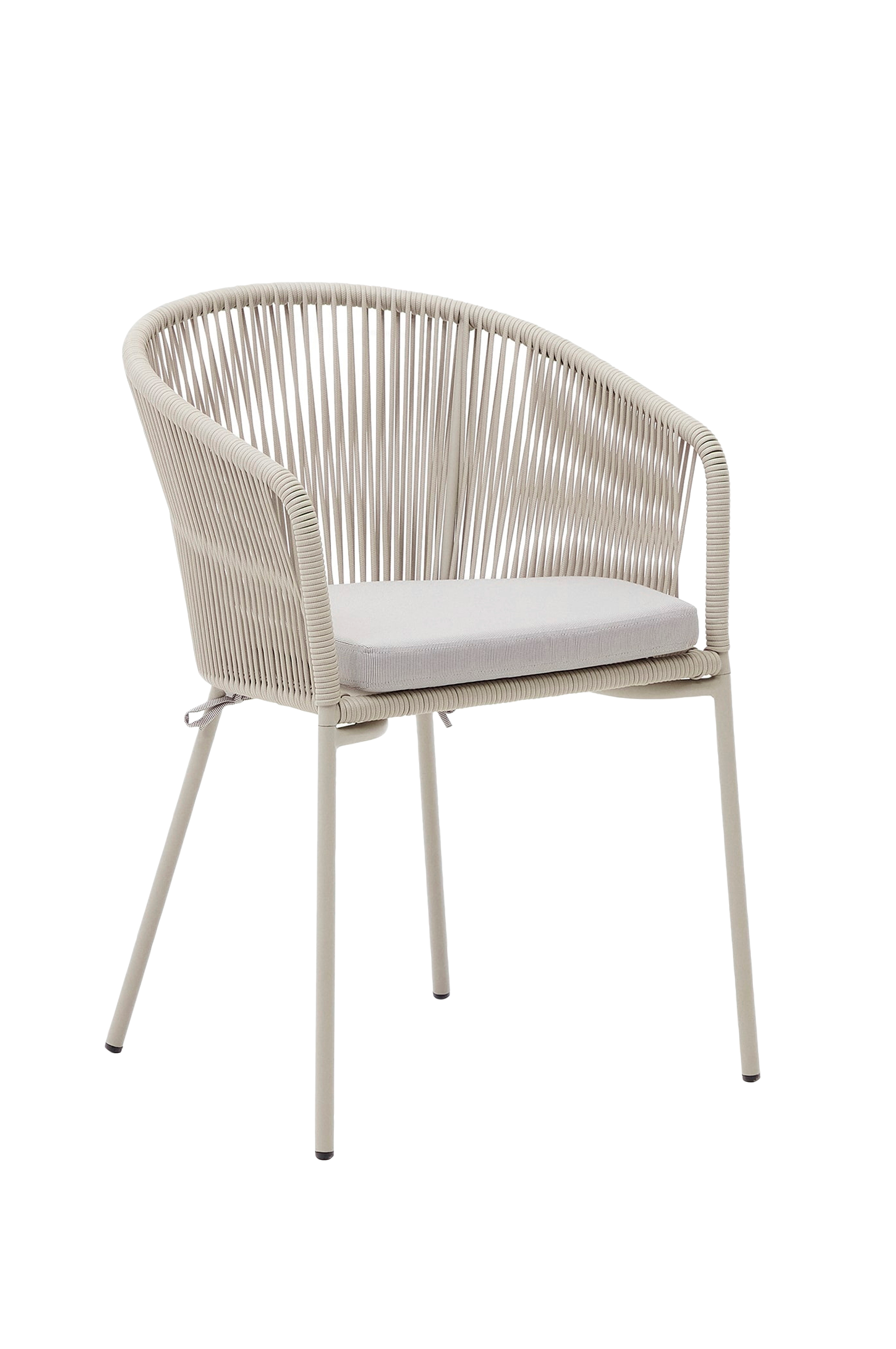 Sisätiloissa tai ulkona ruokailuun tarkoitettu Yanet-tuoli tuo rentoa ilmettä kaikenlaisiin tiloihin käsin punotun synteettisen köyden istuimen ja materiaalien ansiosta, jotka mahdollistavat sen nauttimisen katetun ulkotilan alla. Tuotteen leveys: 56 cm. Tuotteen syvyys: 54cm. Tuotteen korkeus: 80cm.
