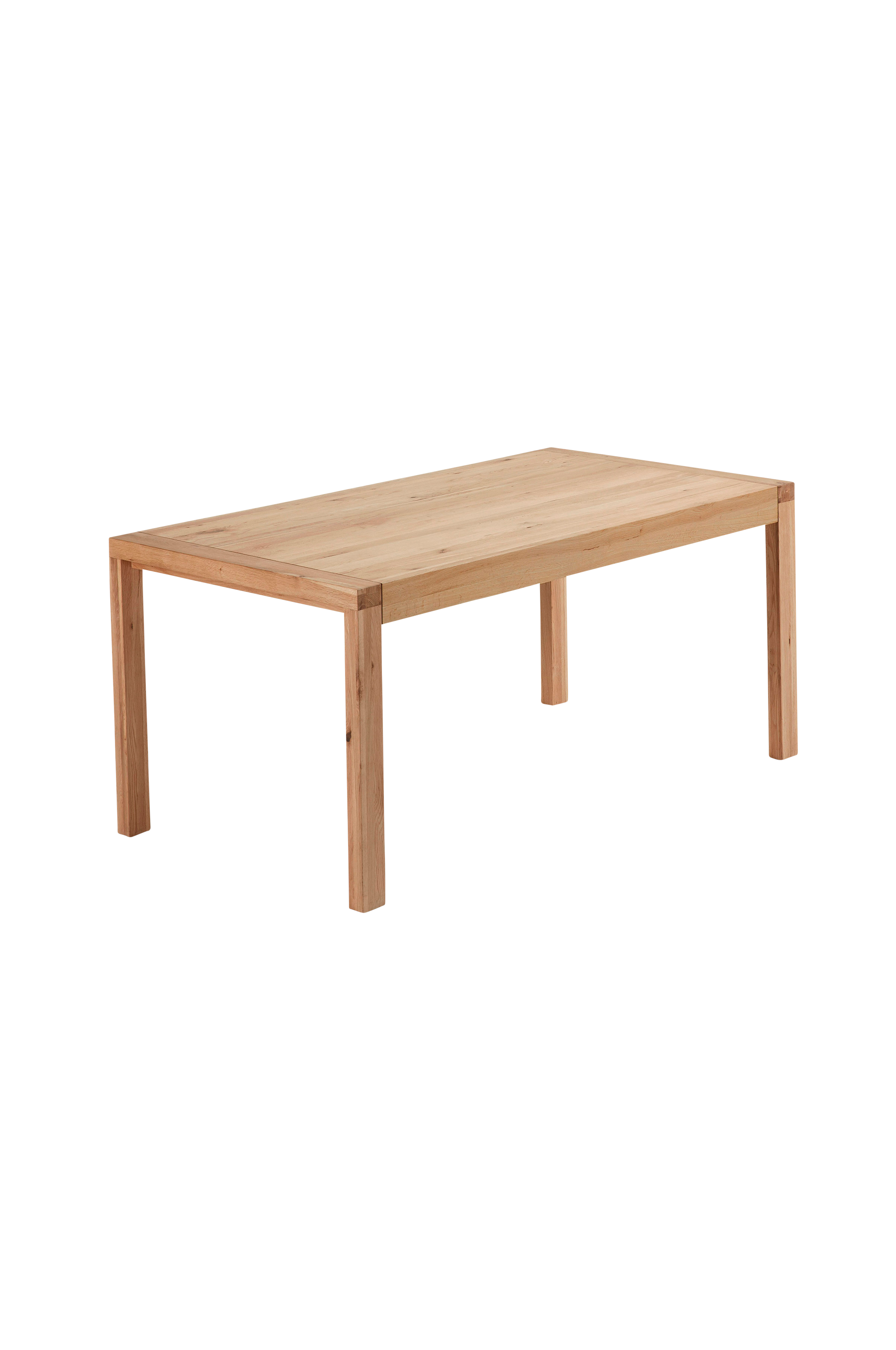 Ruokapöytä massiivitammea, jatkolevy mukana. 100x200 + 80 cm. Korkeus 77 cm. Toimitetaan osina.