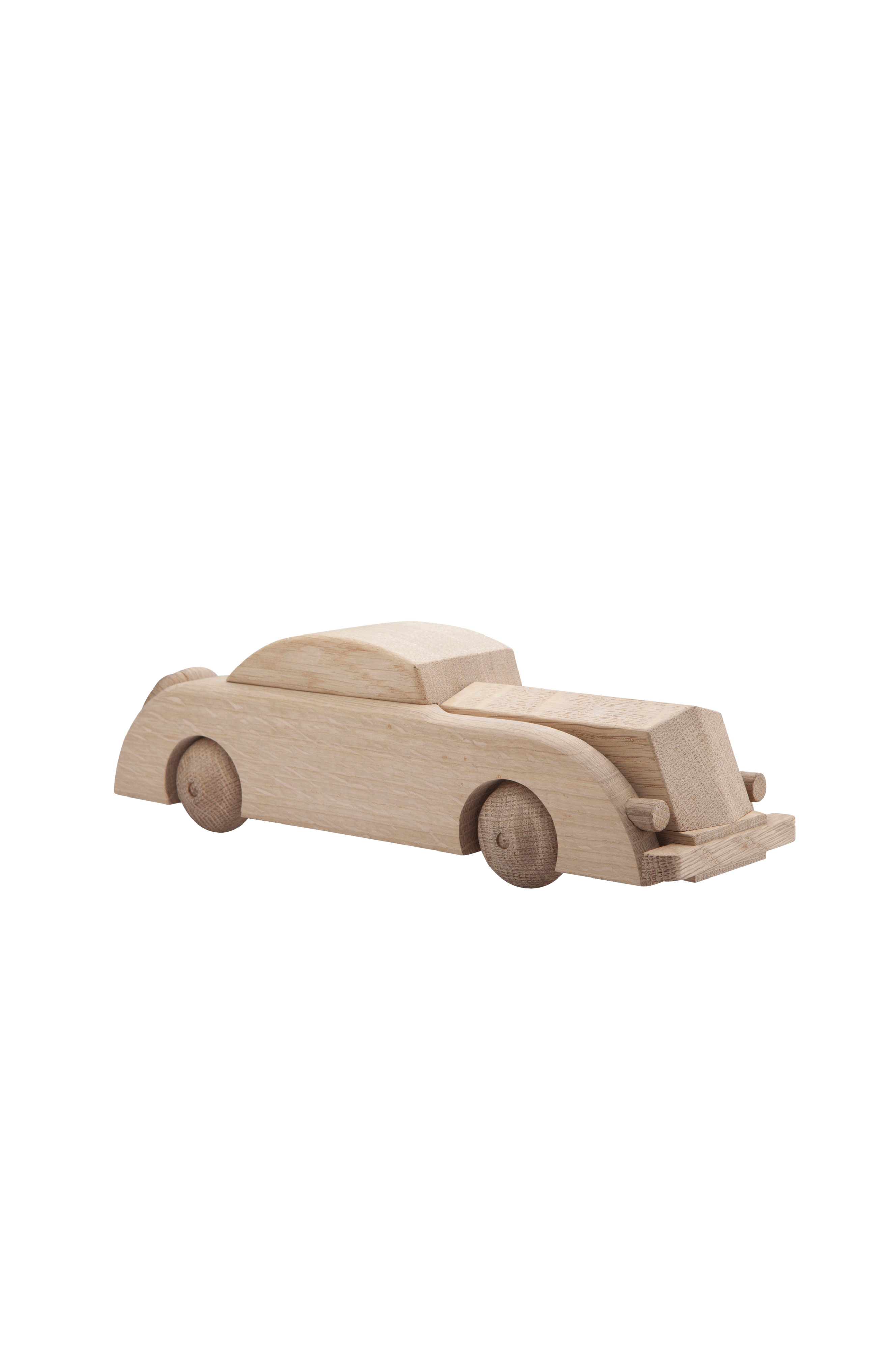 Kay Bojesenin iso limusiini vaaleaa, käsittelemätöntä tammea. Limusiinin pituus on 32 cm. Kay Bojesen oli edellä aikaansa, kun hän alkoi valmistaa moderneja ja ajattomia leikkiautoja 1930- ja 1940-luvuilla. Hän suunnitteli kauniin limusiinin yhteistyössä Ole Wanscherin kanssa. Katon voi irrottaa, aivan kuten sen ajan tyylikkäissä, virtaviivaisissa autoissakin. Irrota katto ja leluauto muuntuu hienoksi avoautoksi tai ylelliseksi limusiiniksi.