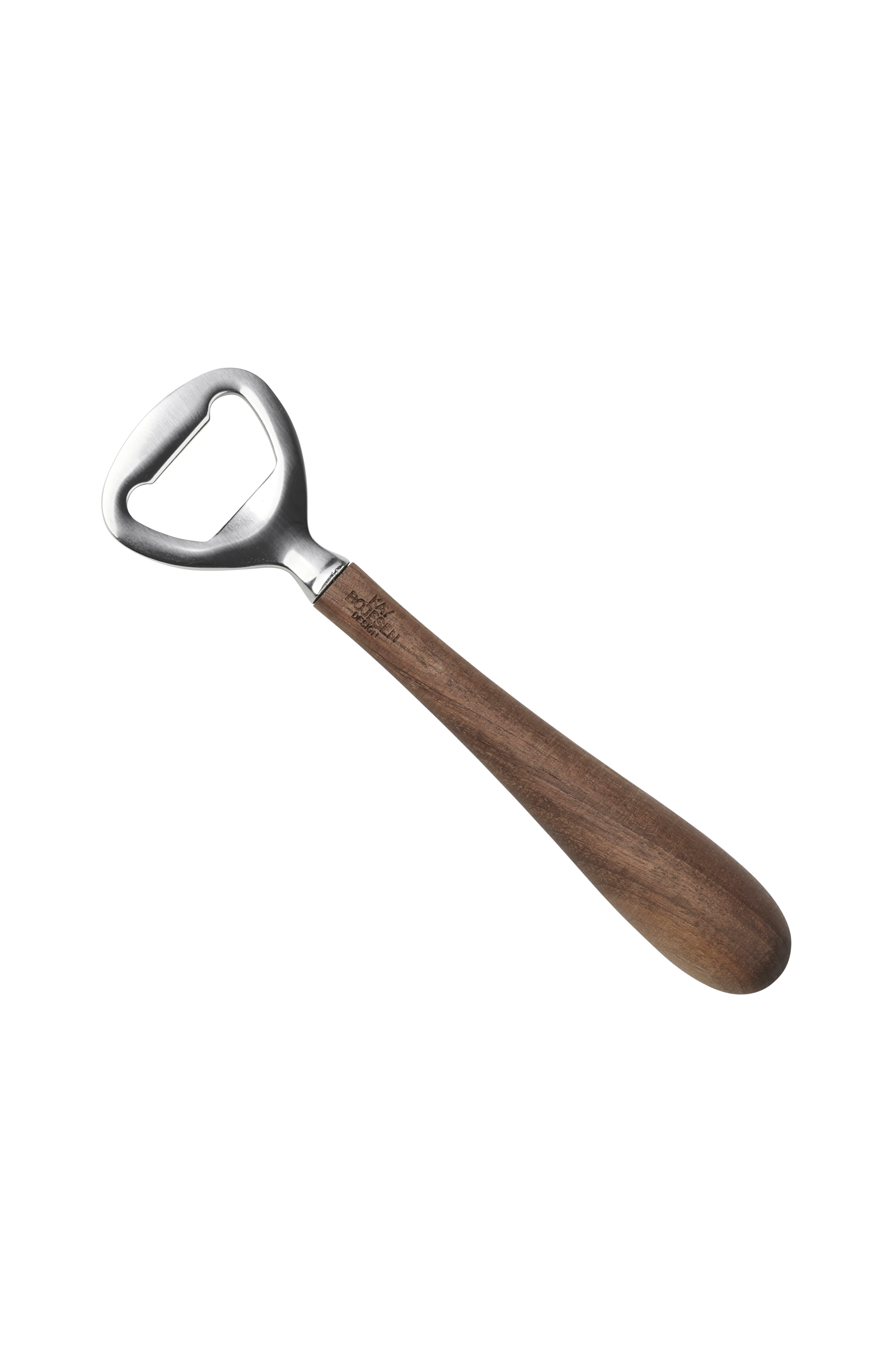 Menageri-sarja lanseeraa nyt pullonavaajan ja korkkiruuvin eksklusiivista tummaa pähkinäpuuta. Molemmat tuotteet ovat kauniisti viimeisteltyjä ja miellyttäviä koskettaa, mikä tekee pullon avaamisesta esteettisen ja taktiilisen kokemuksen joka kerta. Korkkiruuvissa ja pullonavaajassa on ainutlaatuiset kahvat, jotka sopivat hyvin käteen. Näet ja tunnet selvästi Kay Bojesenin tyypillisen pyöreän ja pehmeän muotoilukielen. Keräilijät ja asiantuntijat tunnistavat välittömästi pullonavaajan ja korkkiruuvin, joiden alkuperäinen muotoilu on Kay Bojesenin suunnittelema, ja jotka nyt lanseerataan uudelleen tumman pähkinänvärisinä - kaunis kontrasti kiiltävälle teräkselle. Pieni, huomaamaton logo on kohokuvioitu öljyllä käsiteltyyn puuhun. Öljy korostaa puunsyitä ja tekee puusta kestävämmän.