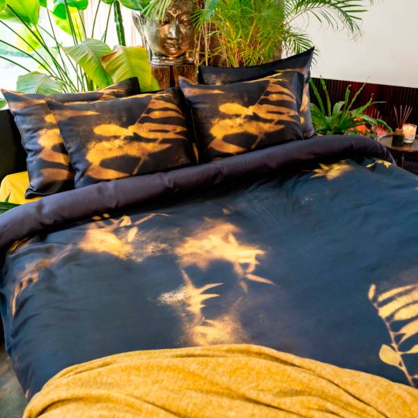 Dojin-pussilakanassa on kaunis ja tumma design sekä yllättävä lehtikuvio. Kullanväriset lehdet tulevat upeasti esiin tummasta taustasta. Yhdistelmä luo ylellisen ja taianomaisen ilmeen. Dojin-pussilakana on 100% Tenceliä. Erittäin kestävä ja uskomattoman pehmeä kangas. Hengittävä kangas on lämmin talvella ja viileä kesällä. Pussilakanasetti, jossa tyynyliina ja pussilakana.