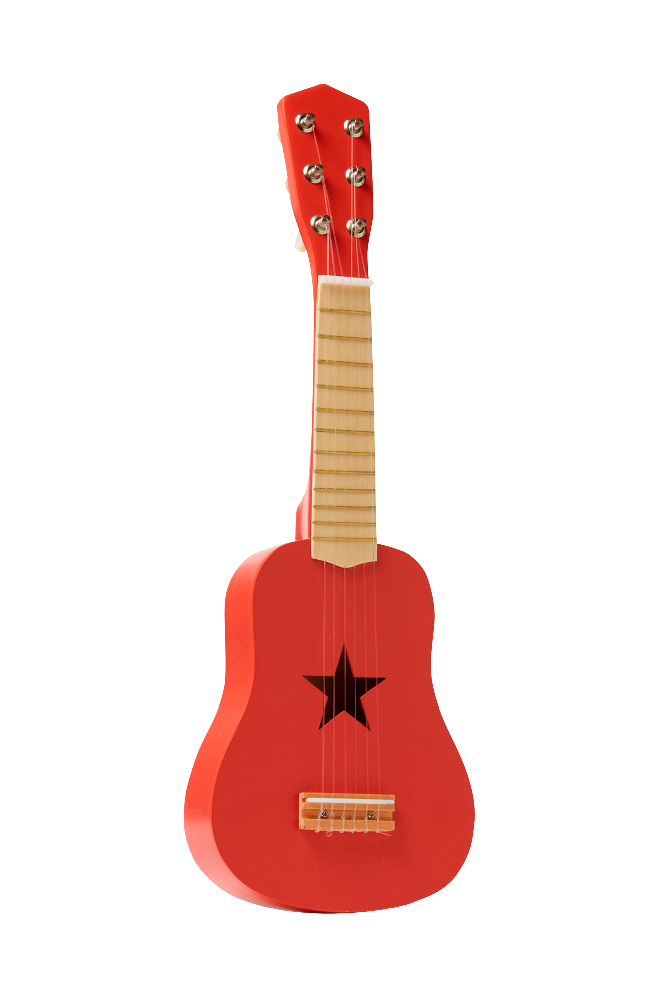 Puinen leikkikitara, jossa tähden muotoinen aukko.