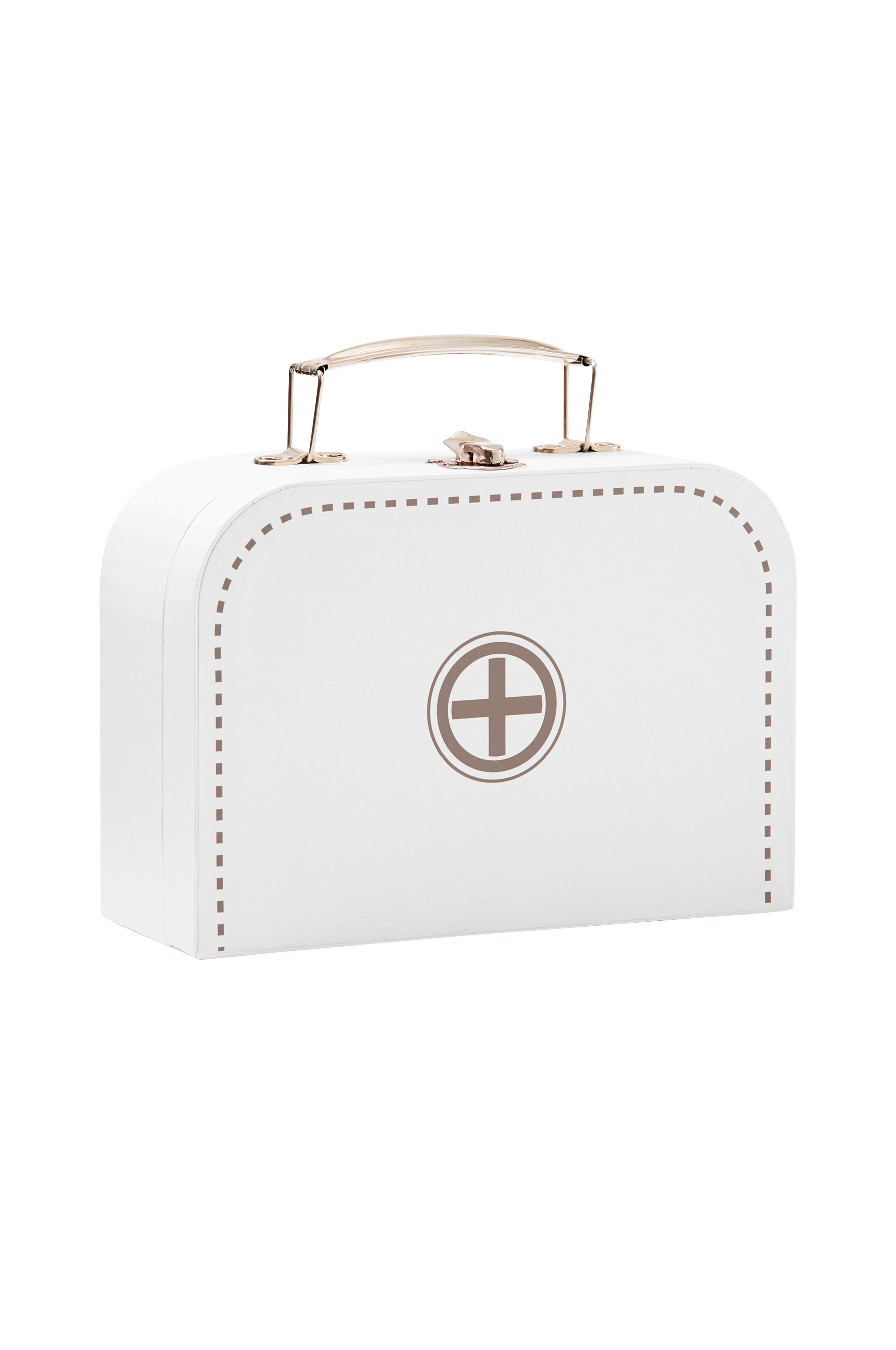 Laukku sisältää stetoskoopin, ulos vedettävän kuumemittarin, suulastan, pilleripurkin, salvan, ulos vedettävän ruiskun ja refleksivasaran. Ei ihme, että monet lapset pitävät lääkärileikeistä - käyväthän lapset kasvaessaan monta kertaa lääkärin tai terveydenhoitajan vastaanotolla. Lapsista on hauska kuunnella sydämen sykettä ja hoitaa pehmoeläimiä.