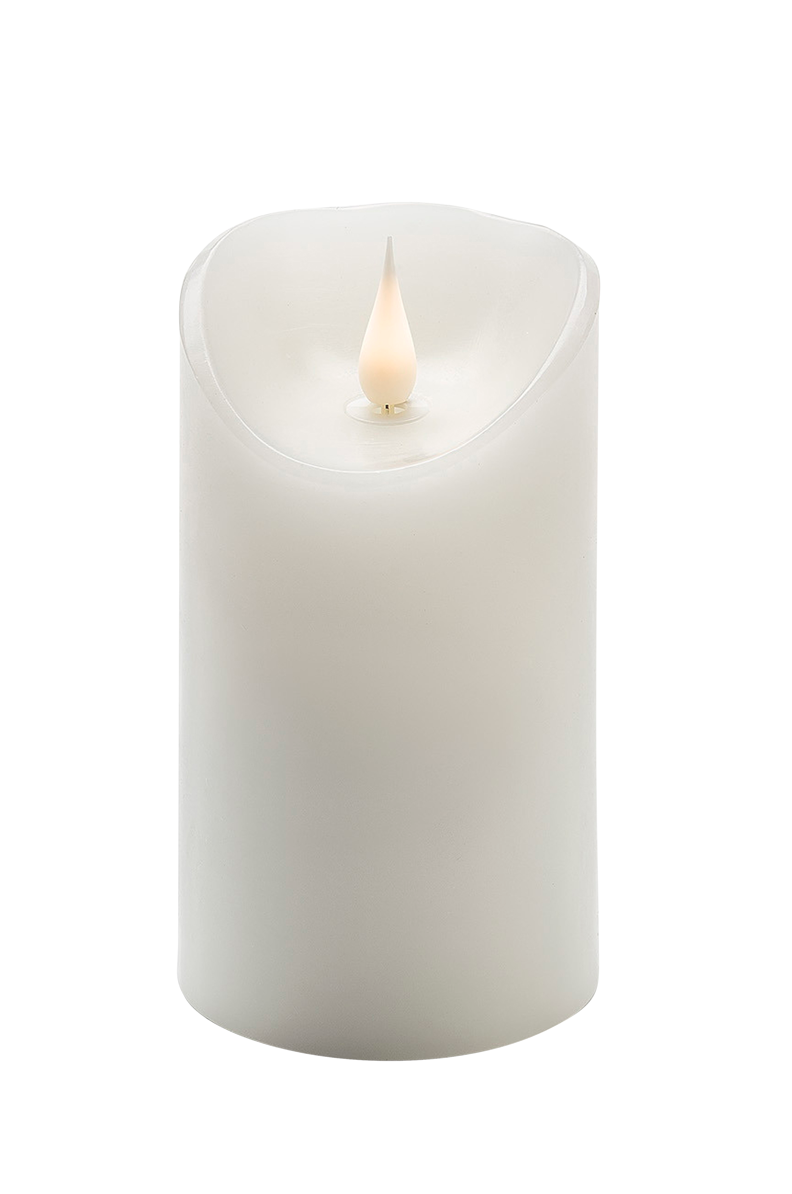Valkoinen living light -vahakynttilä, jossa on lämmin valkoinen led ja 3d-liekki, on realistinen sähköinen pilarikynttilä. Siinä on kätevä ajastin, jossa on 4 ja 8 tunnin asetukset, täydellinen talven pimeyteen. Led-valo on kooltaan 7,5x13,5 cm ja se toimii 2xc-paristolla (ei sisälly). Paloaika paristokäytöllä on noin 1000 tuntia.