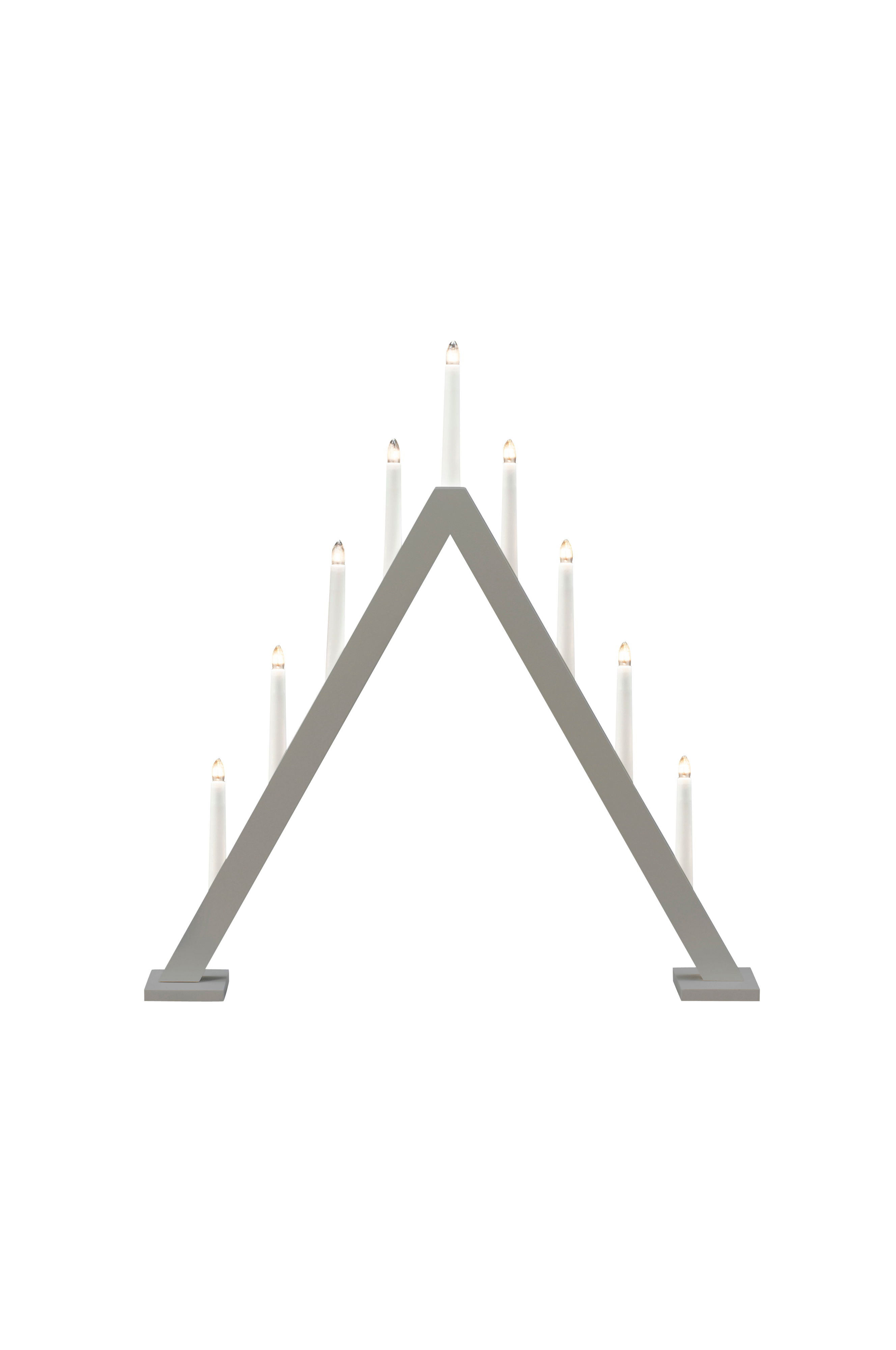 9-haarainen sähköinen kynttilänjalka puusta, joka on maalattu mattaharmaaksi. Täydellinen isompiin ikkunoihin. Siinä on lämpimänvalkoiset valot ja 1,7-metrinen valkoinen liitäntäkaapeli, jossa on kytkin. Korkeus 65 cm ja leveys 60 cm. 230v