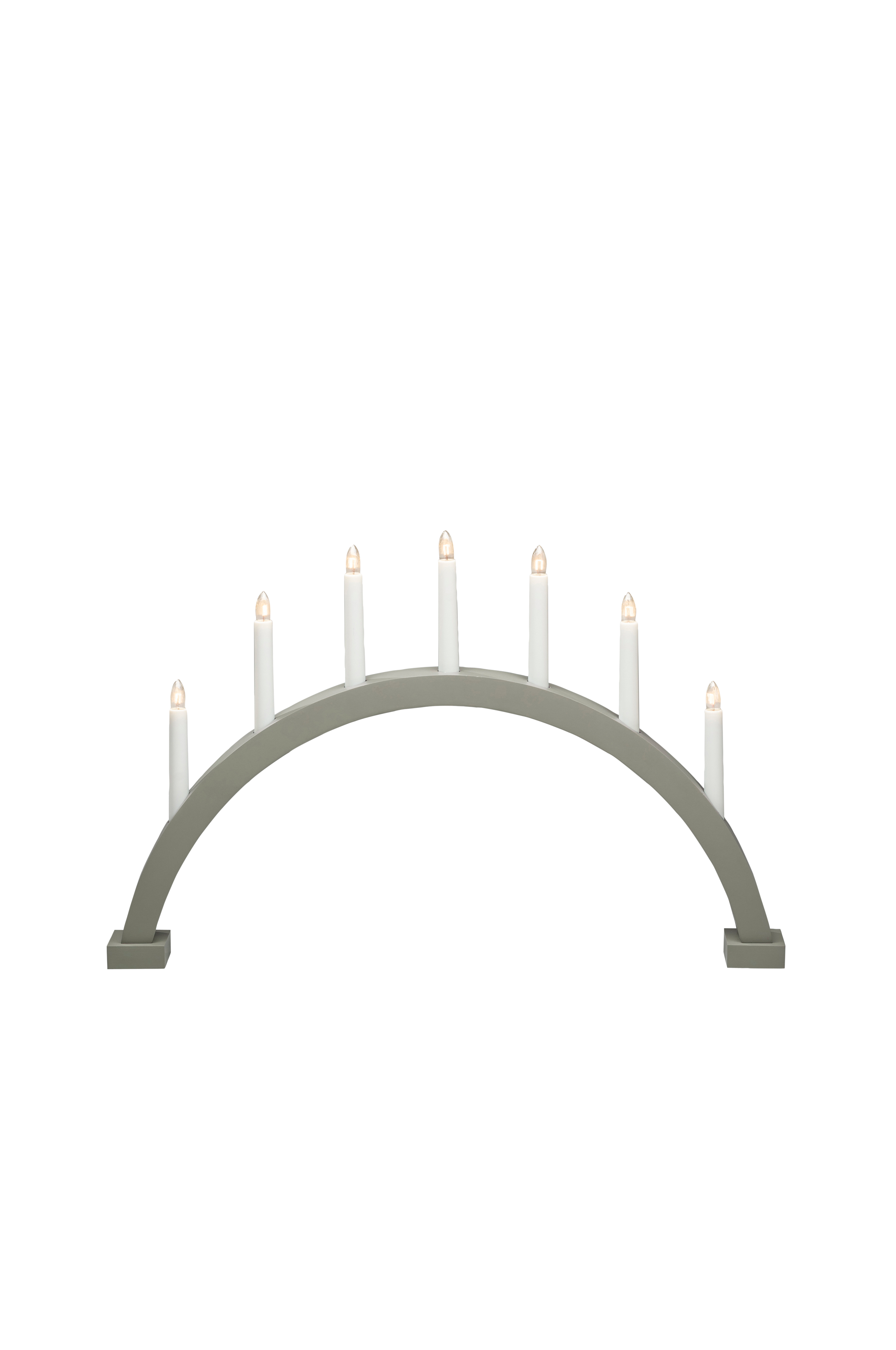 7-varrinen kynttilänjalka mattapunaista tummanpunaista lakattua puuta valkoisella kaapelilla ja kytkimellä. Kynttilä on kaaren muotoinen, 59 cm leveä ja 38,5 cm korkea, ja siinä on 1,7 metrin johto. 230v.