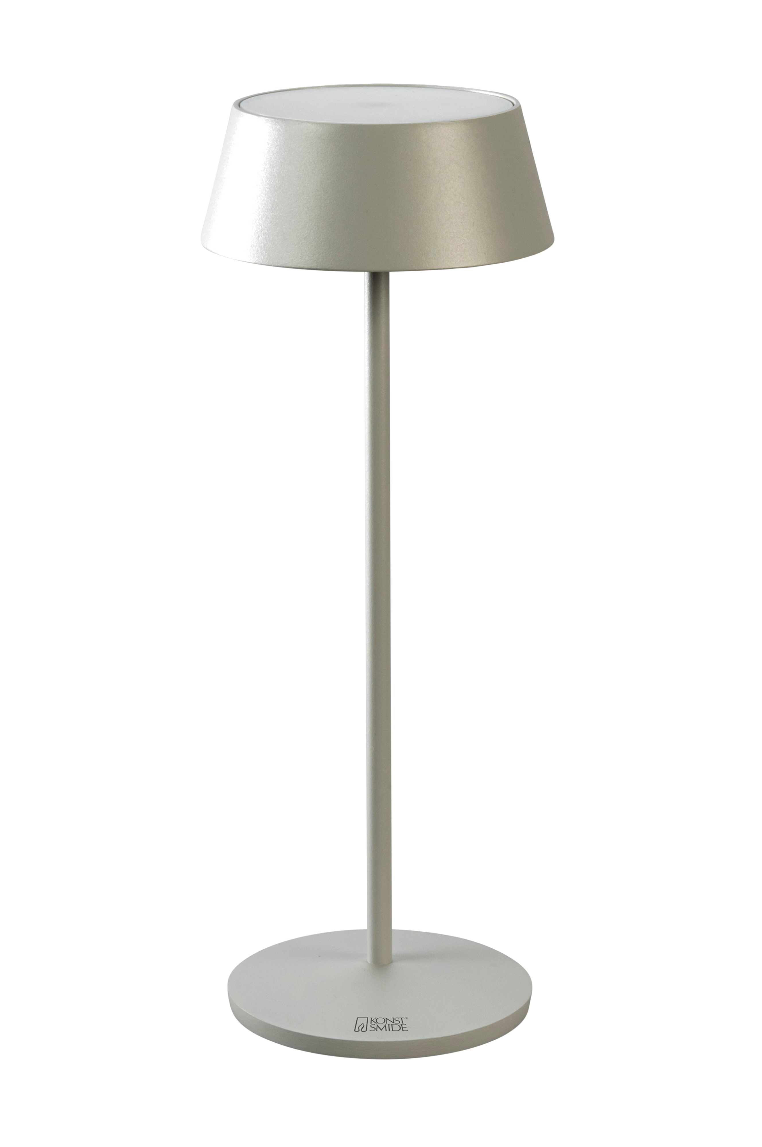 Menton on kannettava pöytävalaisin, jossa on moderni muotoilu ja säädettävä valaistus, jonka värilämpötila vaihtelee 2200k ja 2700k välillä. Luo mukavan tunnelman sekä sisällä että ulkona. Latautuu usb:n kautta ja akun kesto on noin 9 tuntia täydellä kirkkaudella. Päälle/pois-painike varjostimen yläosassa. Maalattua alumiinia. Korkeus 30 cm.