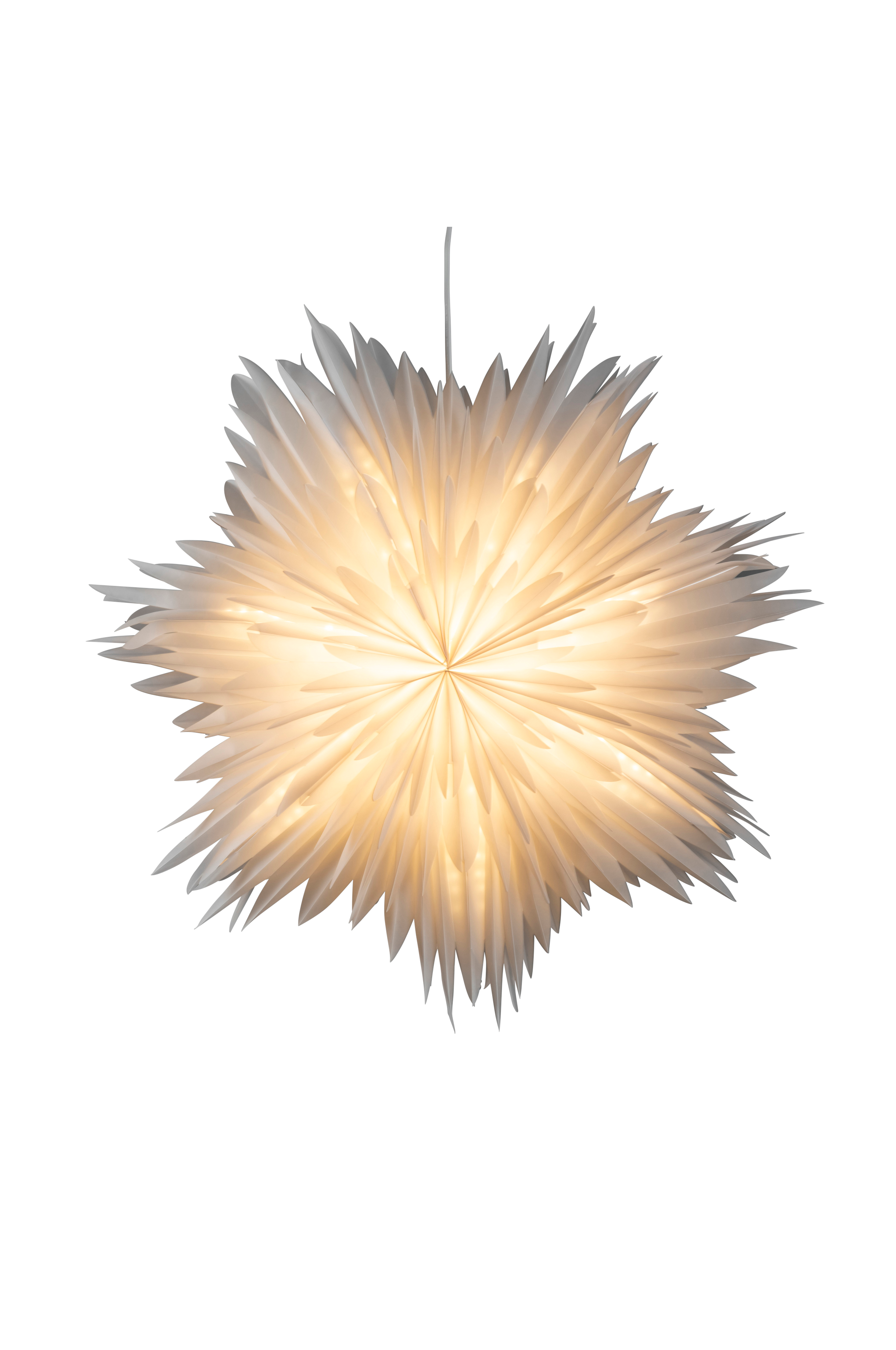 Kaunis paperinen joulutähti, joka luo pehmeän tunnelman huoneeseen. Paperitähti on 80 cm sisältäen valkoisen kaapelin, jossa on kytkin. E14-lamppukanta (hehkulamppu ei sisälly).