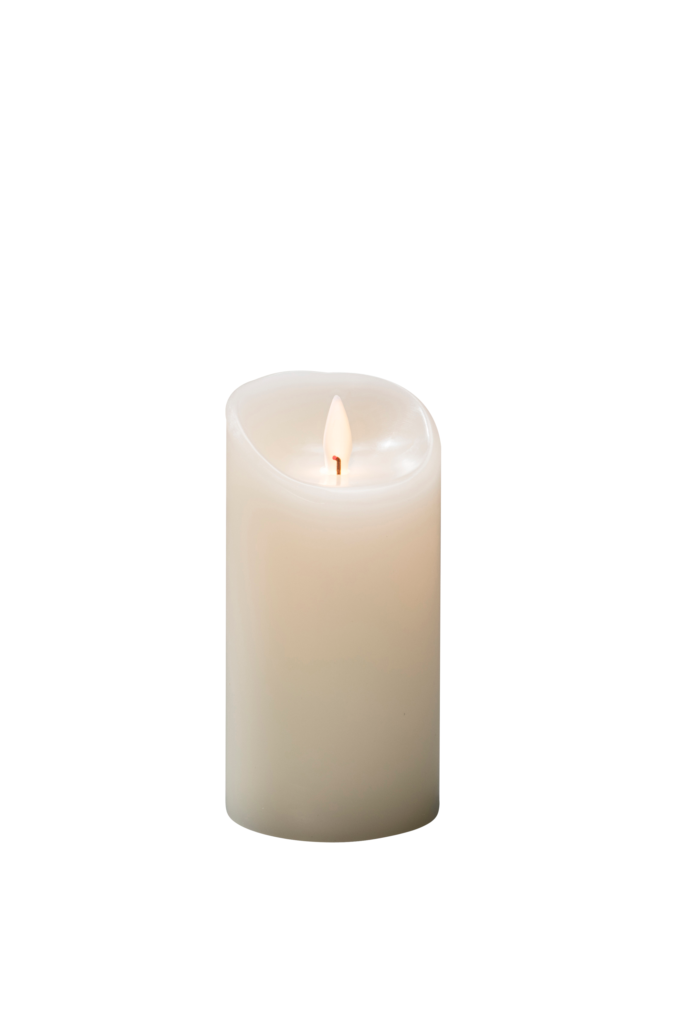Kermanvalkoinen LED-vahakynttilä sisäkäyttöön. Lepattava liekki. Toimii kahdella C-paristolla. Kynttilässä on sisäänrakennettu ajastin 4/8 tuntia. Korkeus 15,2 cm ja halkaisija 7,5 cm.