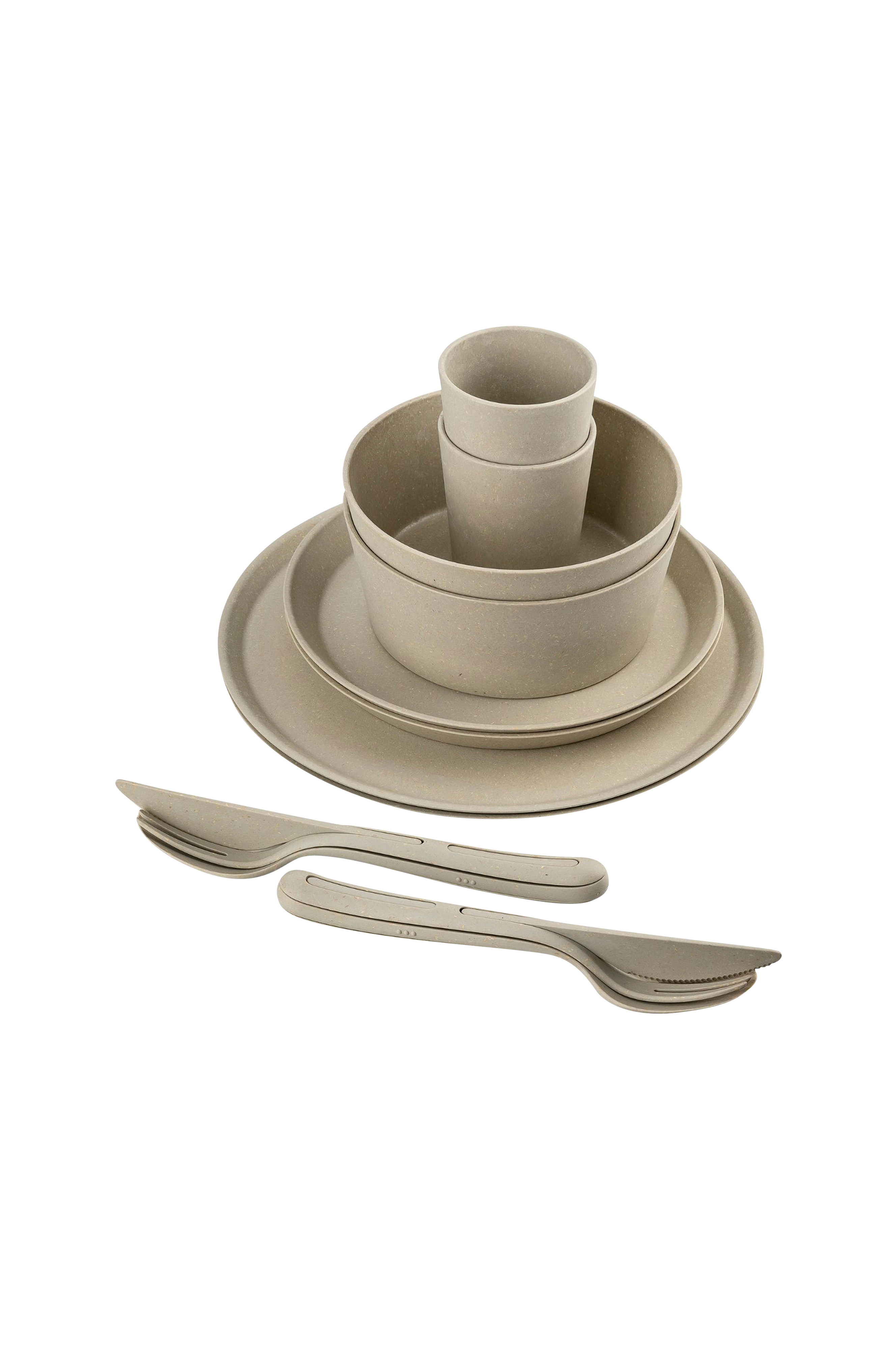 Puhtaiden muotojensa ansiosta tämä astiasto on inspiraatio ensi silmäyksellä. Pieni lautanen sopii erinomaisesti hedelmille, välipaloille tai kakulle, ja pienestä kulhosta tulee nopeasti murojen ja jälkiruokien suosikkisi. Minimalistisesti muotoiltu suuri lautanen sopii harmonisesti kaikkialle ja tekee vaikutuksen vankalla laadullaan ja erittäin siistillä ulkonäöllään. Pieni kulho sopii hyvin käteen ja on yllättävän täydellinen ilman kahvaa. Kompakti klikk-ruokailuvälinesarja on täydellinen kumppani astiasarjalle. Ruokailuvälineet ovat tukevia, kevyitä ja pinottavia, mikä tekee niistä välttämättömän kumppanin piknikille, retkeilylle ja vaellusreissuille. Mitat: 25,7 cm materiaali: kestomuovia ja puukuitua, 100 % kierrätysmateriaalia. Ohjeet: Astianpesukoneessa pestävä