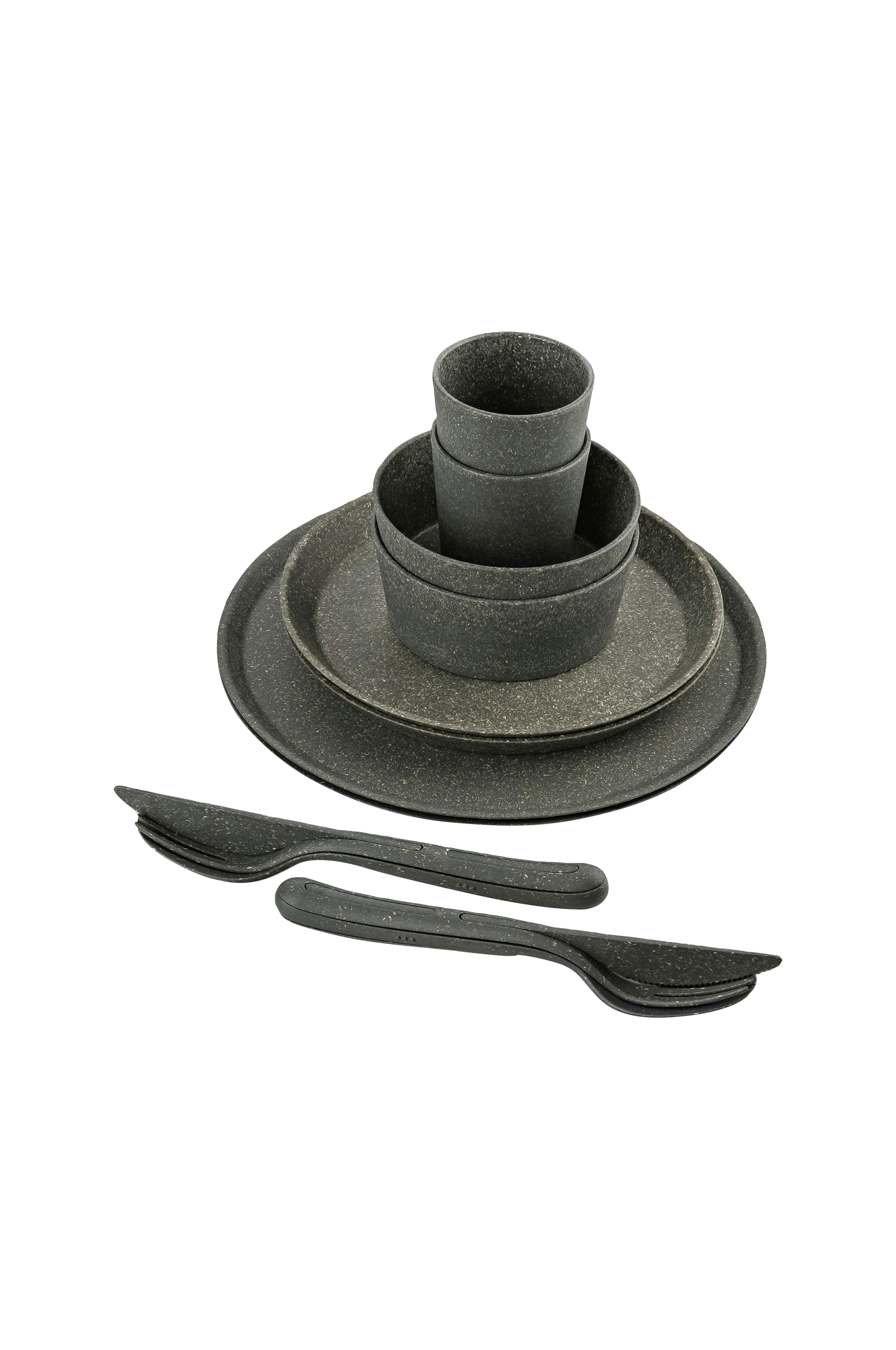 Puhtaiden muotojensa ansiosta tämä astiasto on inspiraatio ensi silmäyksellä. Pieni lautanen sopii erinomaisesti hedelmille, välipaloille tai kakulle, ja pienestä kulhosta tulee nopeasti murojen ja jälkiruokien suosikkisi. Minimalistisesti muotoiltu suuri lautanen sopii harmonisesti kaikkialle ja tekee vaikutuksen vankalla laadullaan ja erittäin siistillä ulkonäöllään. Pieni kulho sopii hyvin käteen ja on yllättävän täydellinen ilman kahvaa. Kompakti klikk-ruokailuvälinesarja on täydellinen kumppani astiasarjalle. Ruokailuvälineet ovat tukevia, kevyitä ja pinottavia, mikä tekee niistä välttämättömän kumppanin piknikille, retkeilylle ja vaellusreissuille. Mitat: 25,7 cm materiaali: kestomuovia ja puukuitua, 100 % kierrätysmateriaalia. Ohjeet: Astianpesukoneessa pestävä