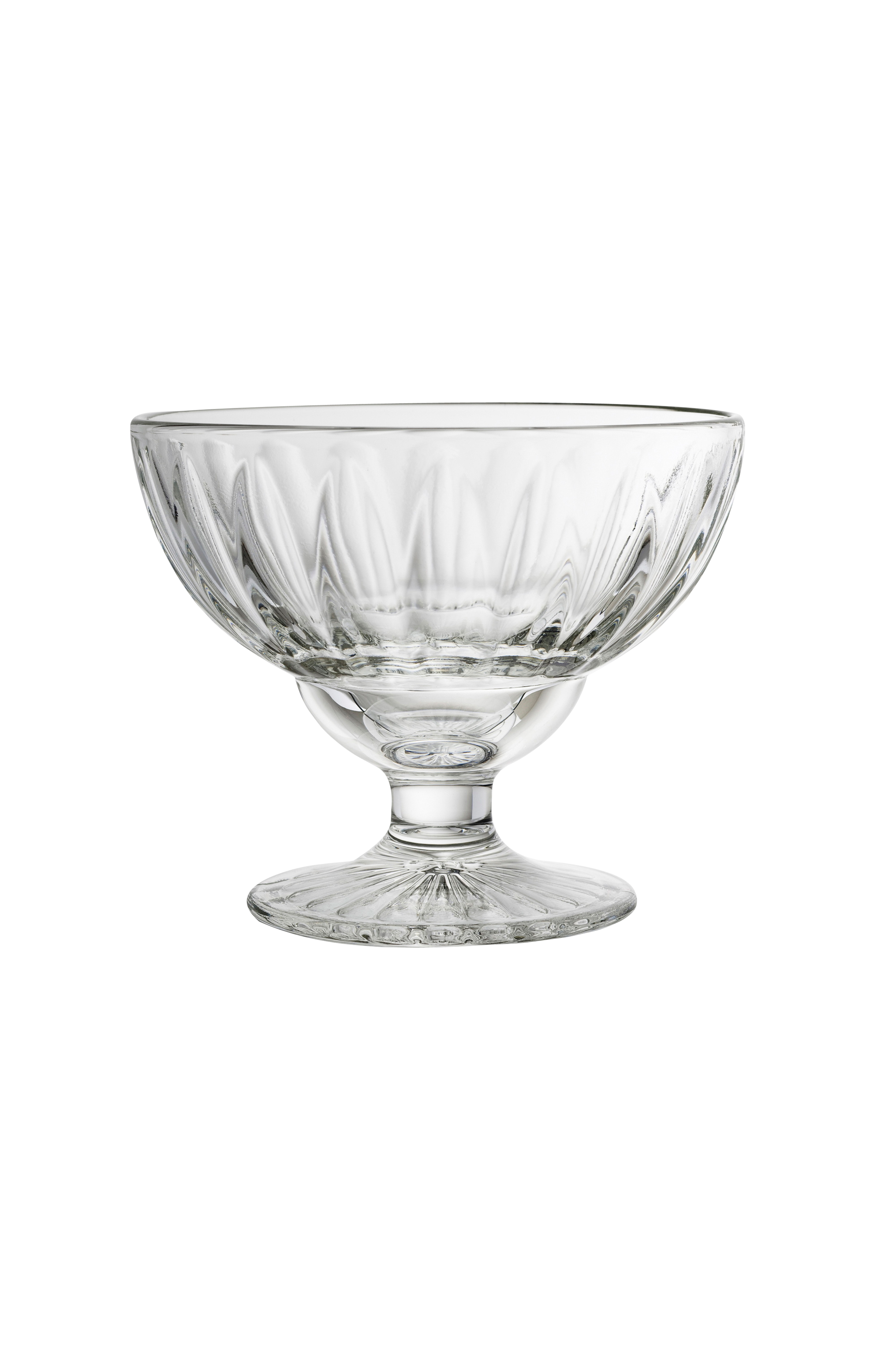 Elise-jalalliset kulhot, 6 kpl, ranskalaiselta la rochère. Näissä klassisissa lasikulhoissa on tukeva jalka ja pehmeästi uurretut reunat, joten ne sopivat erinomaisesti jäätelön ja muiden jälkiruokien tarjoiluun. Niihin mahtuu 40 cl.
