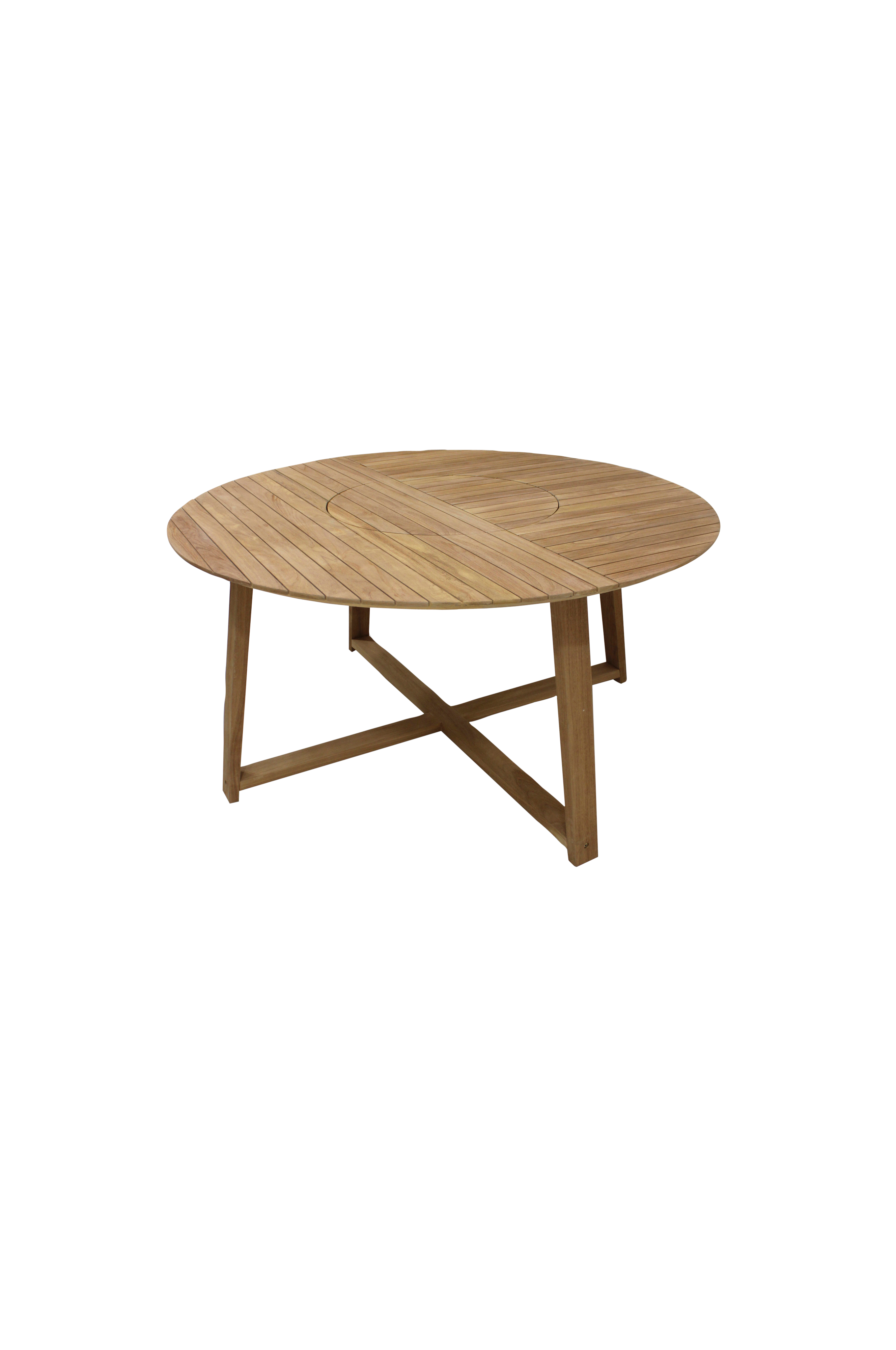 Pyöreä pöytä, pyörivä keskiosa indonesialaisesta teakista. Sopii 4-6x hengen ruokailulle. Moderni muotoilu.
