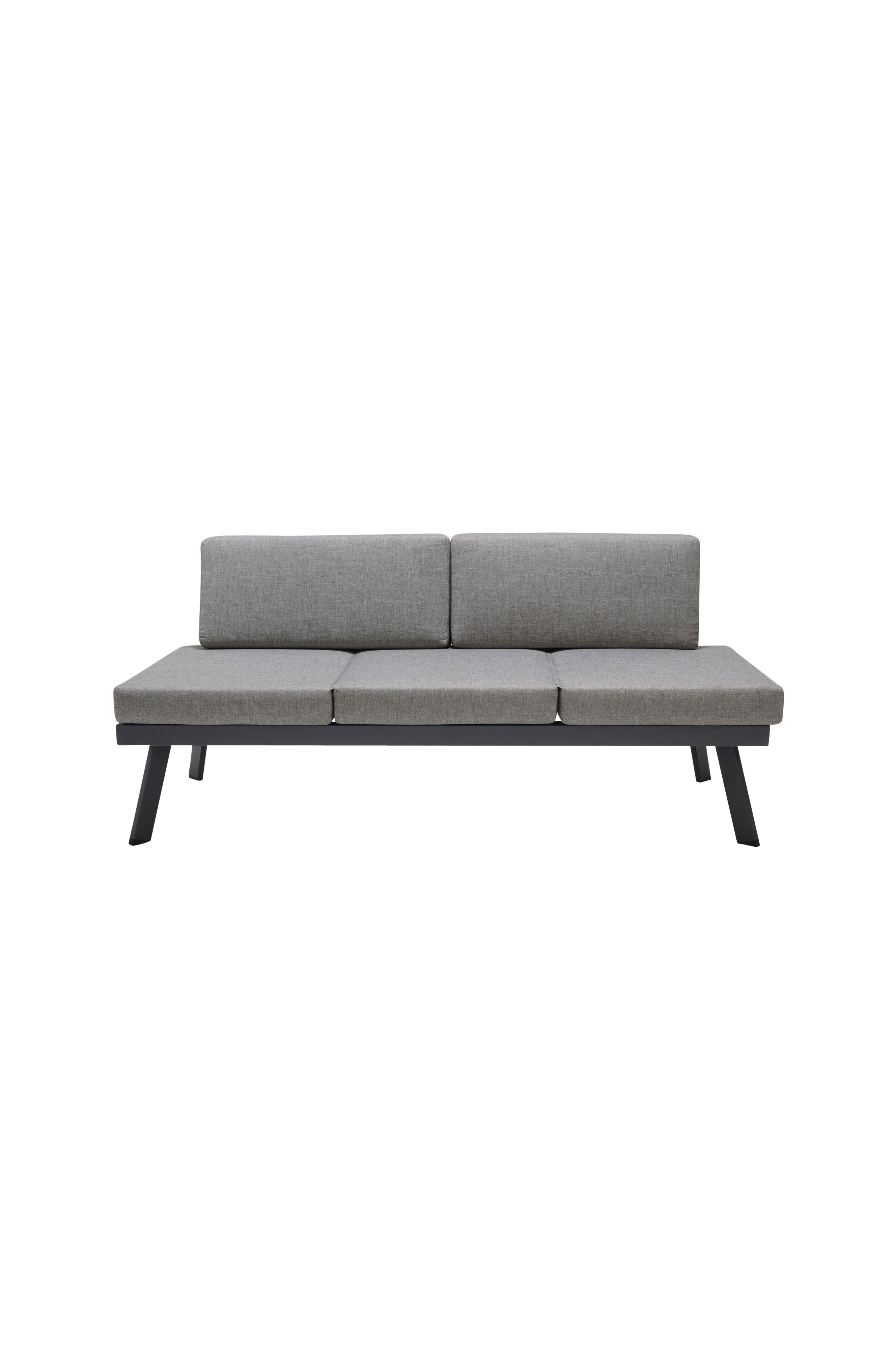 Kahden hengen lepotuolisohva alumiinista tummanharmaalla värillä, jossa on hiottu vaikutus, ruokailukorkeus, voidaan yhdistää ruokapöytiin. Olefiinityynyt, mukavasti istumapaikkoja 3 hengelle. 100% huoltovapaa.