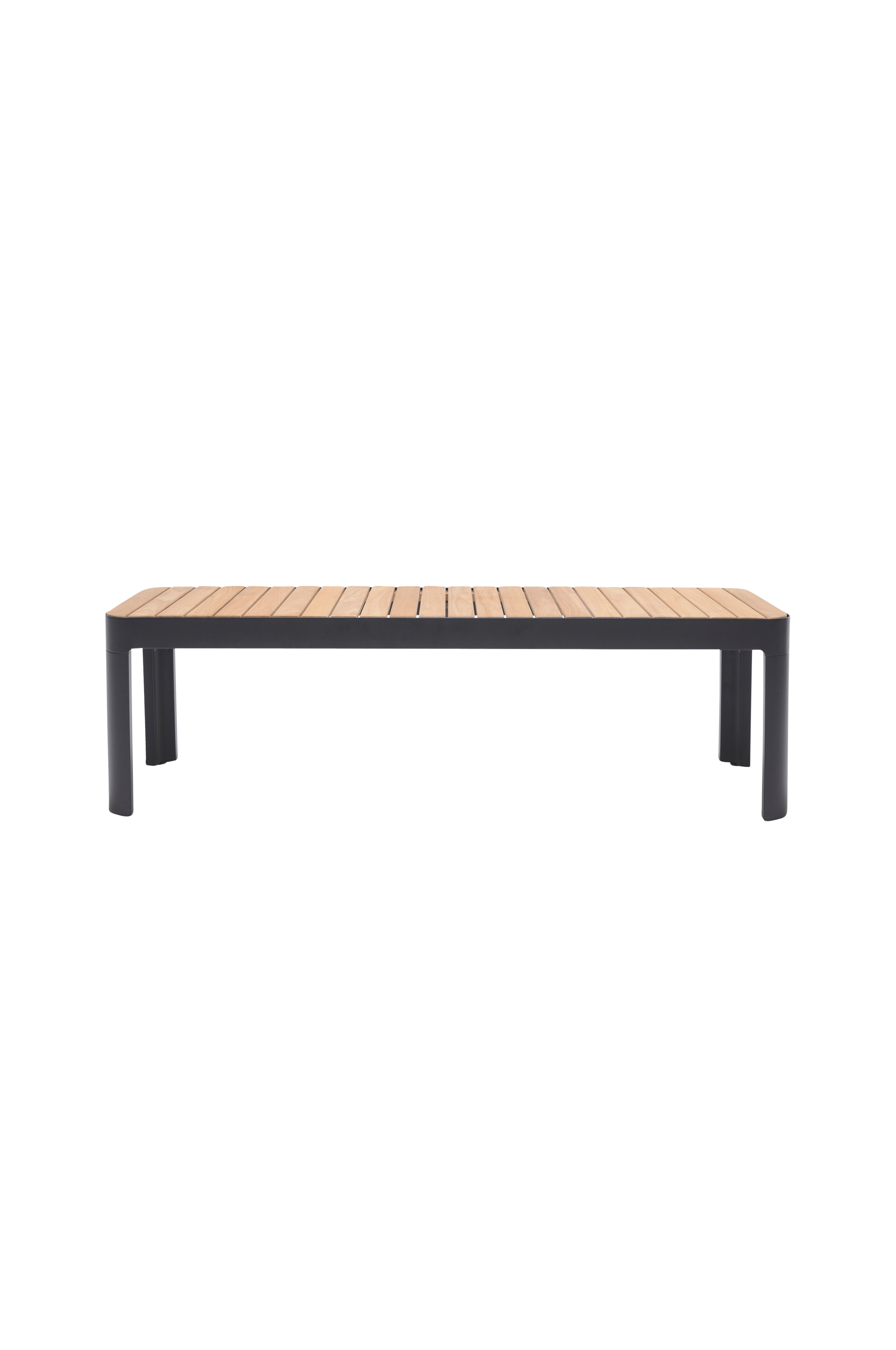 Die Casted Aluminum Bench with Teak FSC seat. Good for 2-3 people, sanded finish in ecru white.