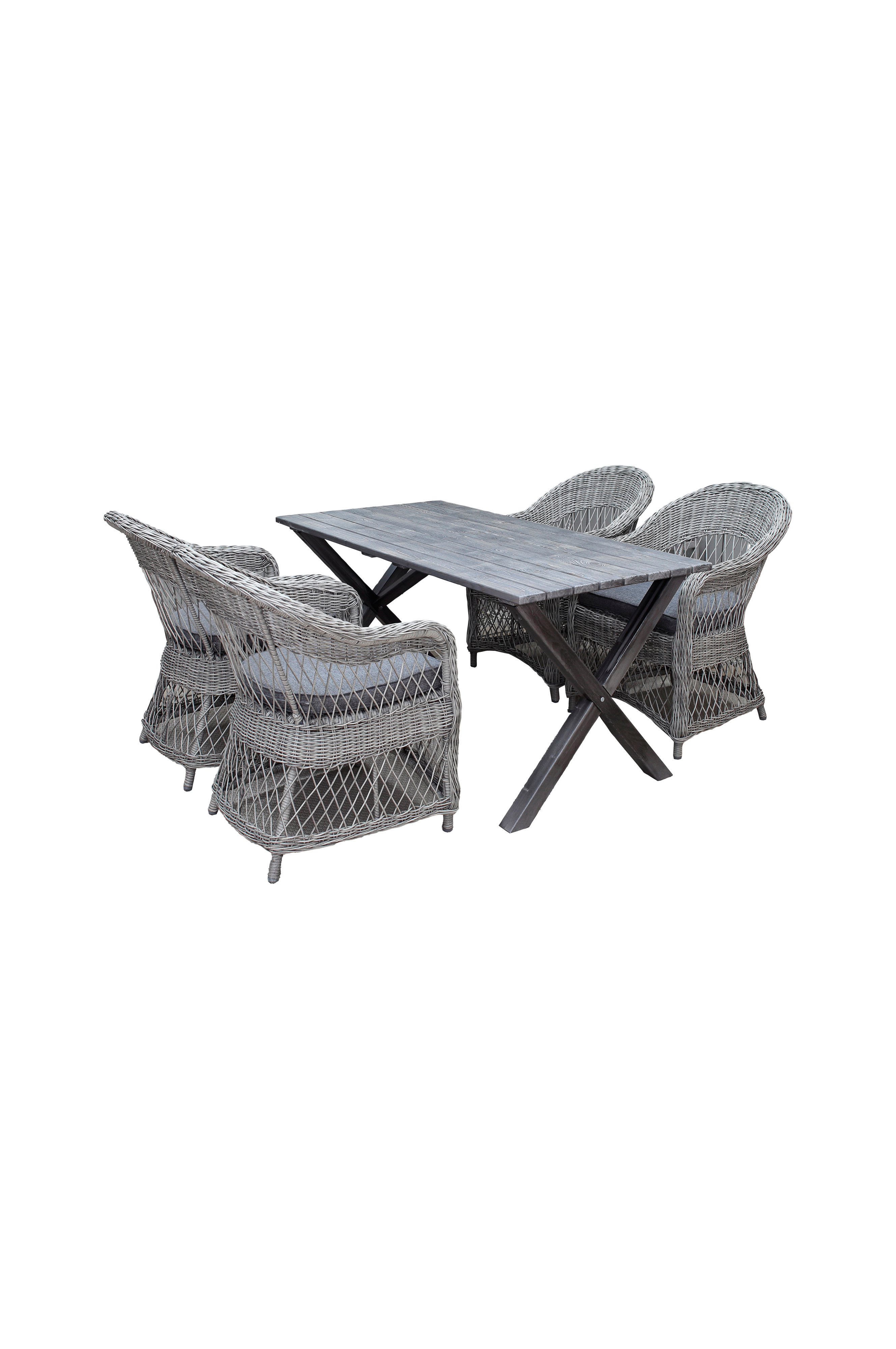 LifestyleGarden Pöytä 150 cm & 4 kpl Marbella-tuoleja
