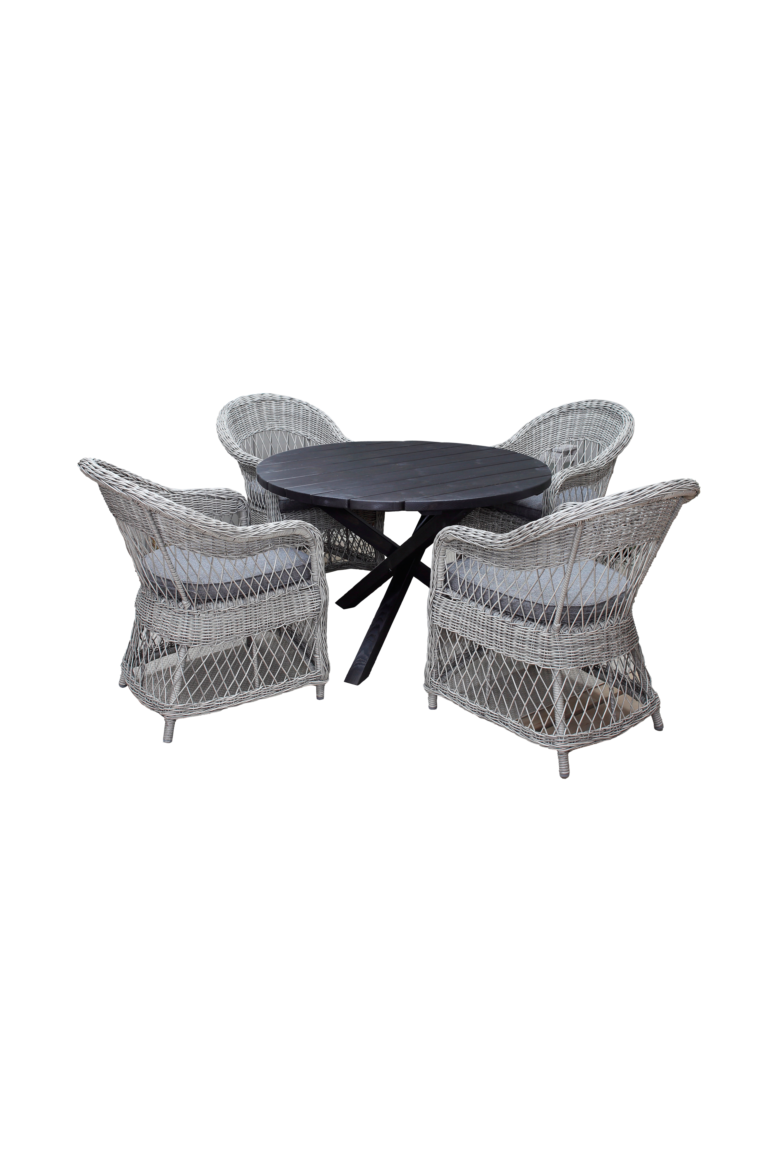 LifestyleGarden Pöytä Ø 112 cm & 4 kpl Marbella-tuoleja.