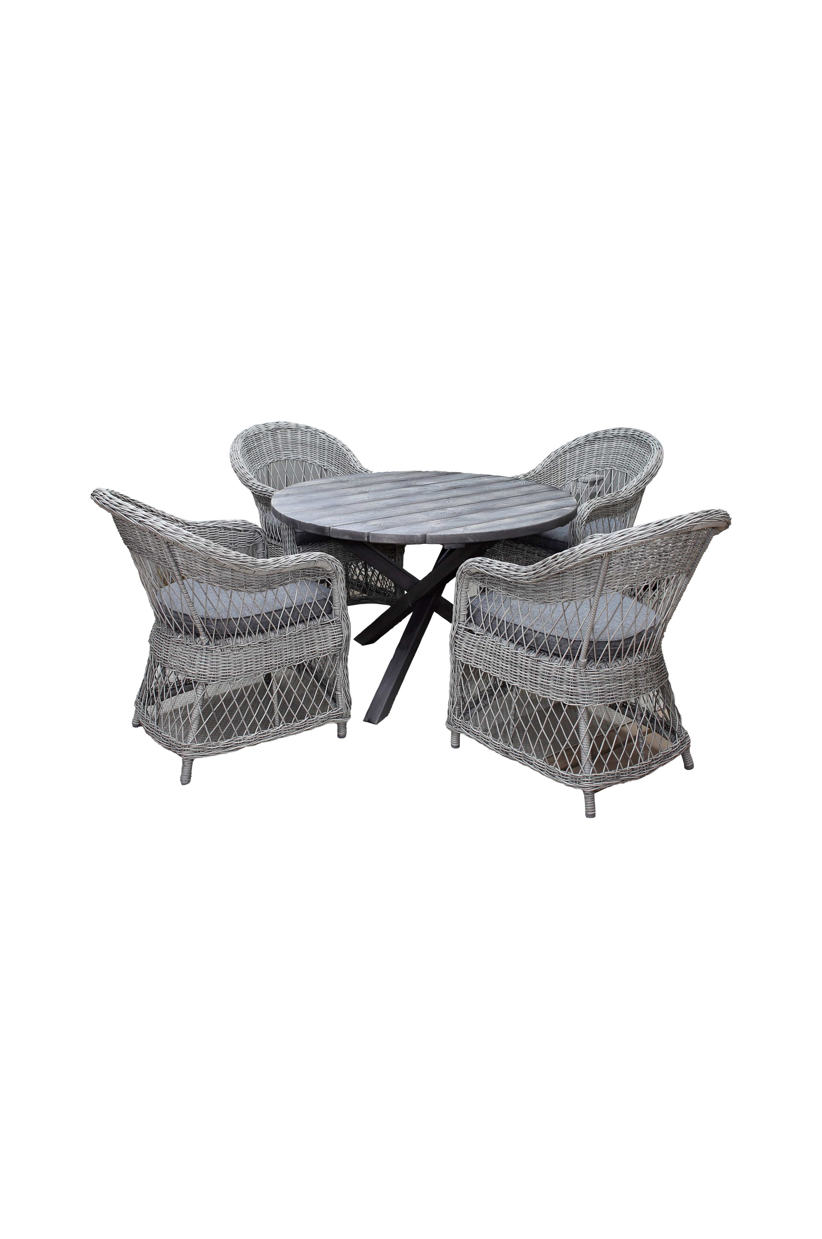 LifestyleGarden Pöytä Ø 112 cm & 4 kpl Marbella-tuoleja.