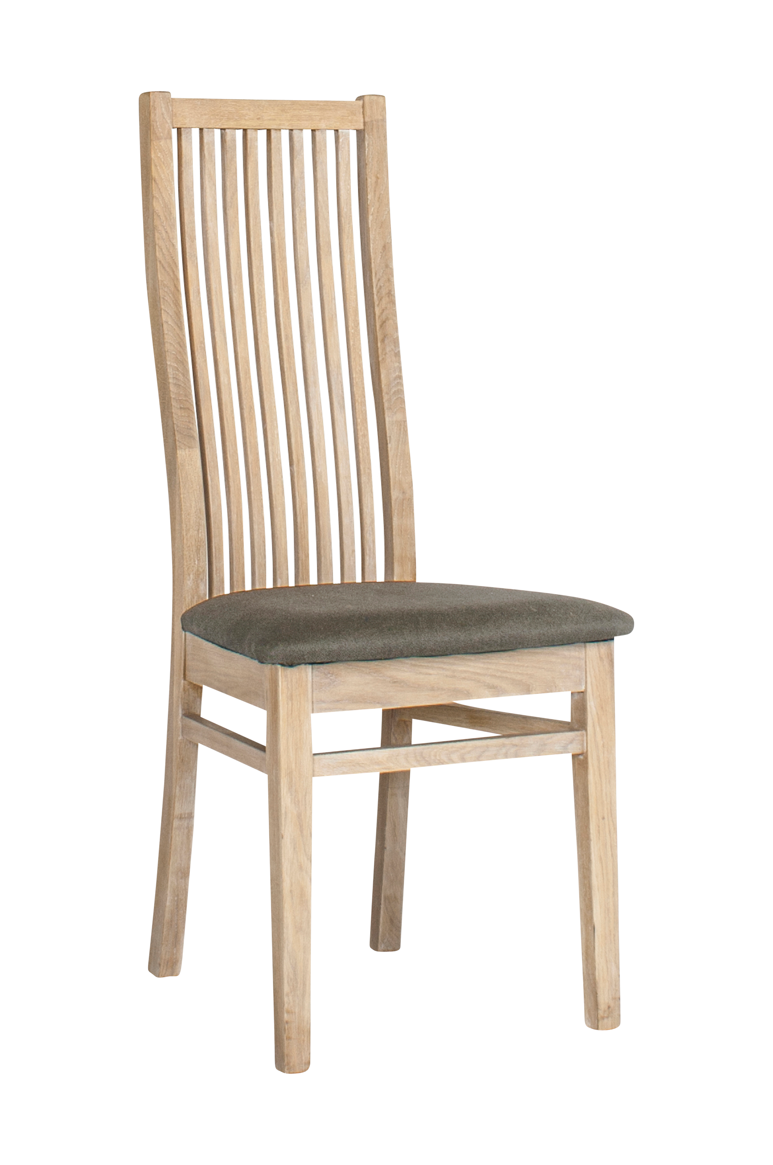 Sandra-tuoli on valmistettu massiivitammesta, ja istuin on päällystetty kestävällä kankaalla tai tekonahalla. Harmonisesti muotoiltu selkänoja ja pehmustettu istuin tekevät tuolista erittäin mukavan.