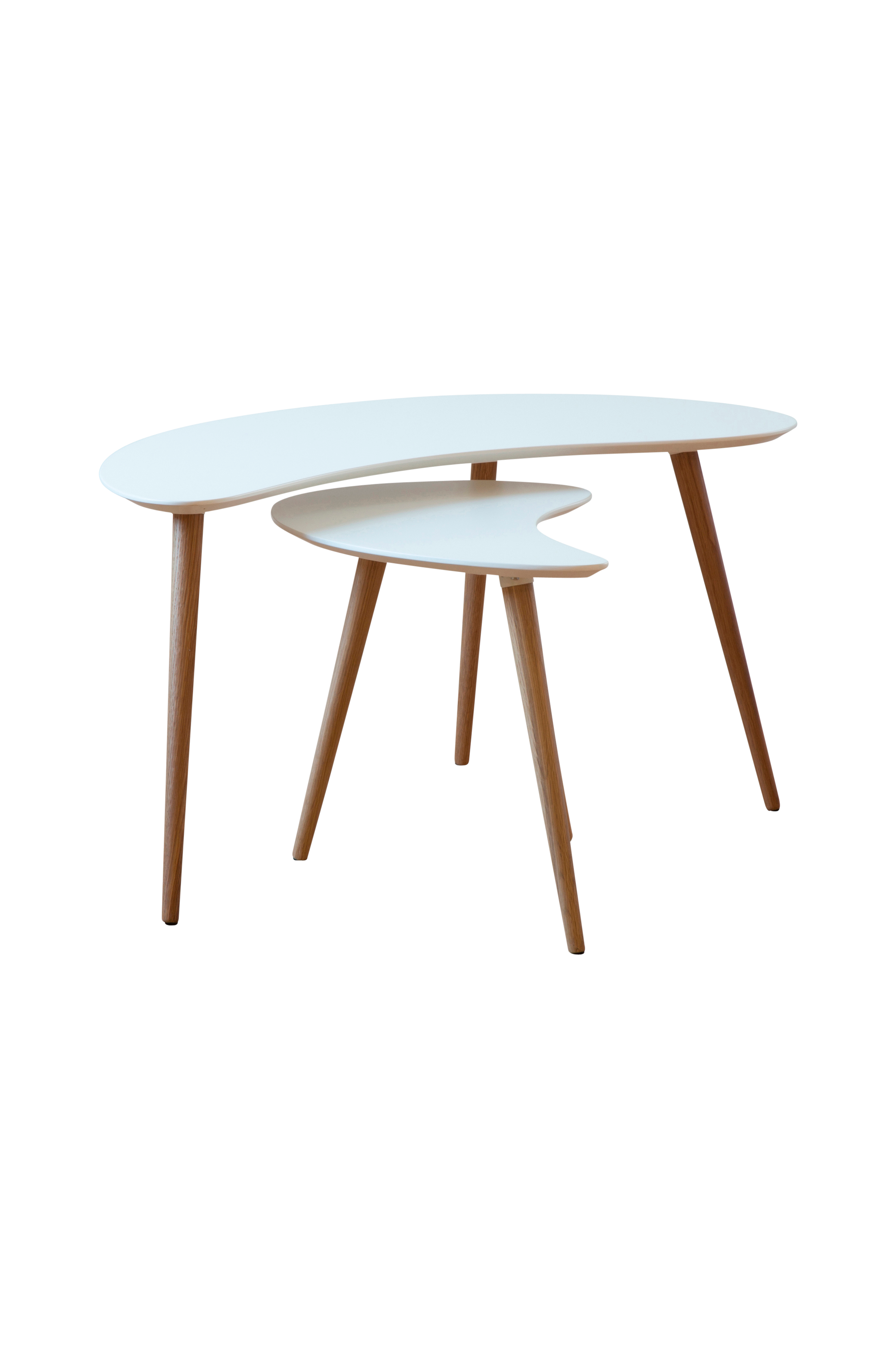 Fiona-pöydässä on kaikuja 60-luvun orgaanisista muodoista. Tyylikäs tammi ja käytännöllinen laminaatti muodostavat linjakkaan ja ilmeikkään sisustuselementin.