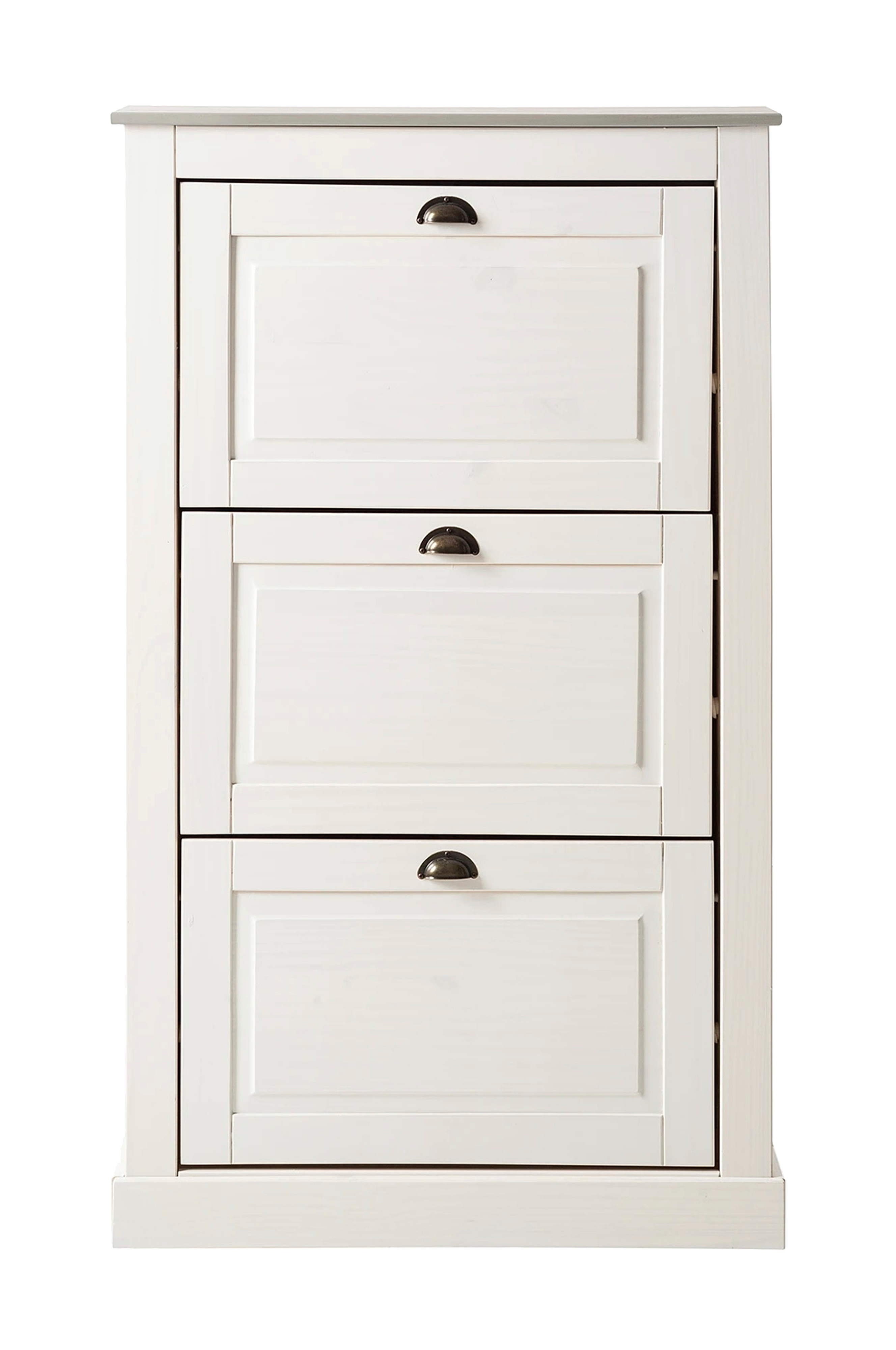 Tämä kenkälaatikko on valmistettu korkealaatuisesta männyn puusta, joka on luonnollisen kaunis ja kestävä. Tyylikästä ja yksinkertaista muotoilua täydentävät kolme läppää, jotka voidaan avata ja paljastaa runsaasti säilytystilaa vaatteille, kengille ja asusteille.