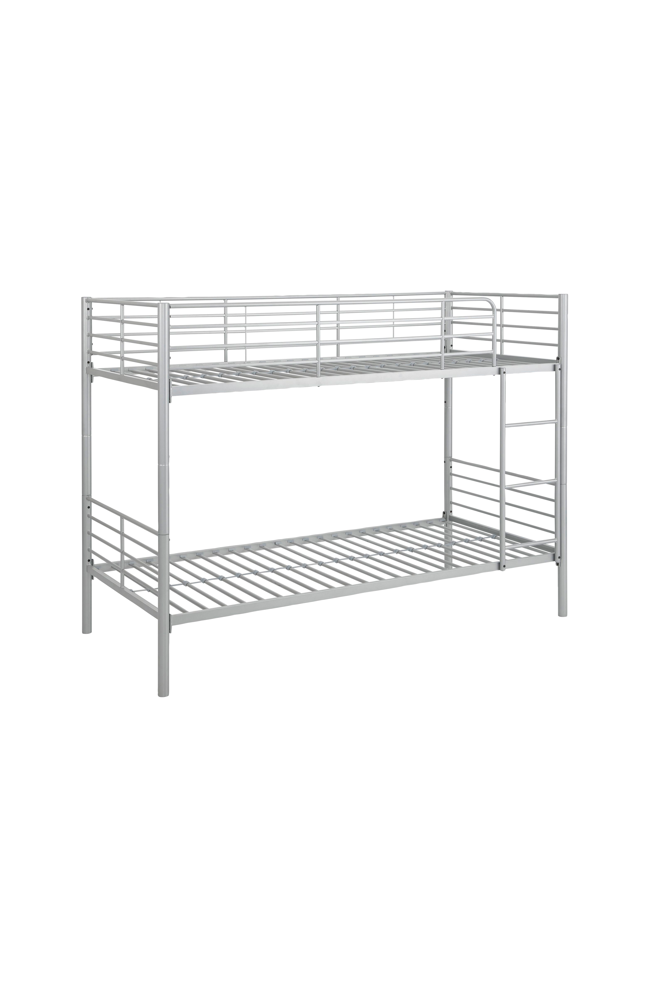 Tämä monipuolinen metallinen kerrossänky voidaan helposti muuntaa kahdeksi yhden hengen vuoteeksi. Siinä on kaksi nukkuma-aluetta, joissa on metallilistat, turvakaide ja tikkaat. Kokoon koottuna koko on noin 20897160 cm wdh. Kummankin yhden hengen sängyn korkeus on 65 cm, ja alemman sängyn päätyosan ja ylemmän sängyn välissä on 58 cm:n rako. Tämä kerrossänky tarjoaa käytännöllisen ja tilaa säästävän ratkaisun mihin tahansa makuuhuoneeseen, jossa yhdistyvät toiminnallisuus ja tukeva muotoilu.