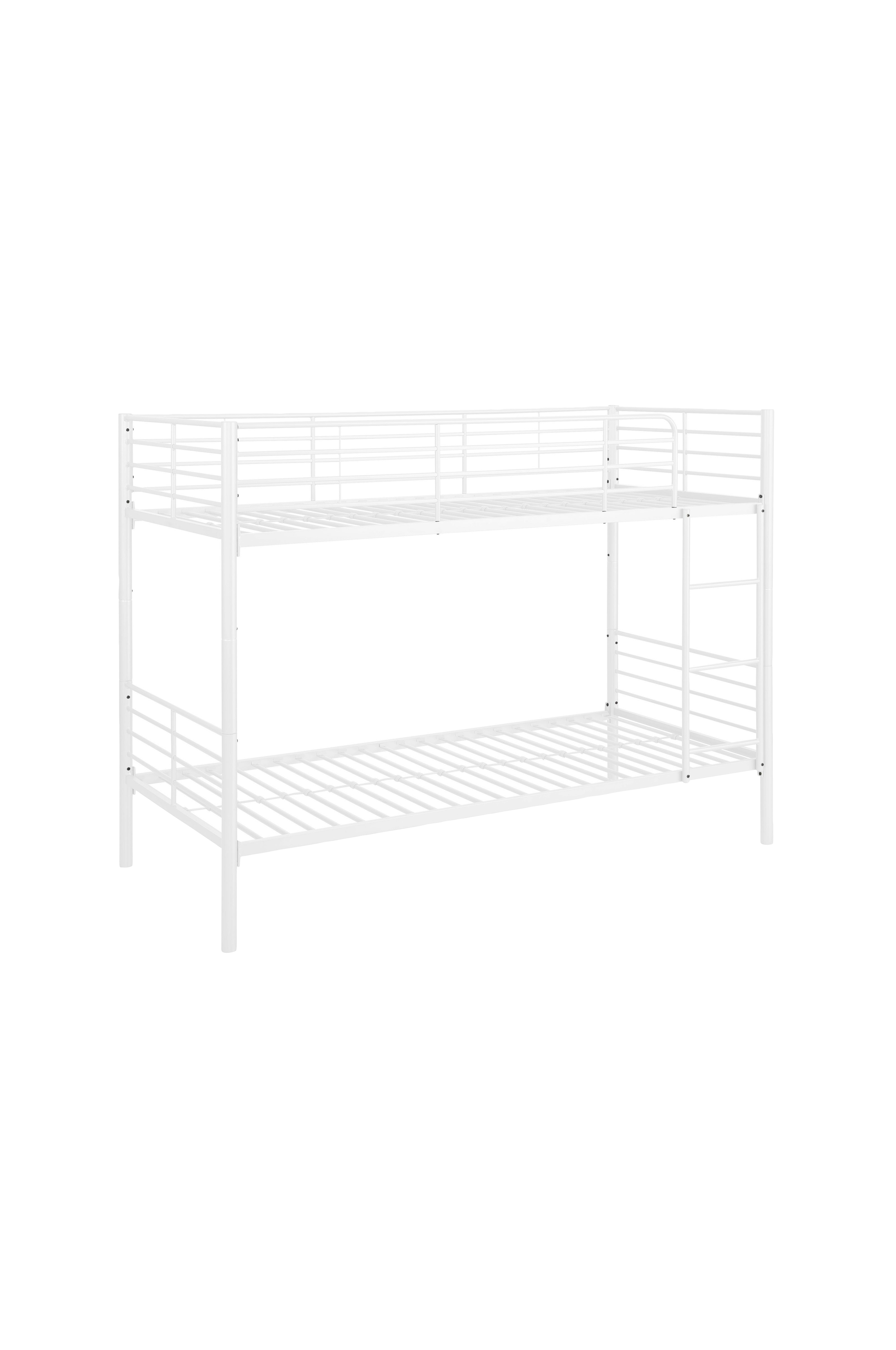 Tämä monipuolinen metallinen kerrossänky voidaan helposti muuntaa kahdeksi yhden hengen vuoteeksi. Siinä on kaksi nukkuma-aluetta, joissa on metallilistat, turvakaide ja tikkaat. Kokoon koottuna koko on noin 20897160 cm wdh. Kummankin yhden hengen sängyn korkeus on 65 cm, ja alemman sängyn päätyosan ja ylemmän sängyn välissä on 58 cm:n rako. Tämä kerrossänky tarjoaa käytännöllisen ja tilaa säästävän ratkaisun mihin tahansa makuuhuoneeseen, jossa yhdistyvät toiminnallisuus ja tukeva muotoilu.