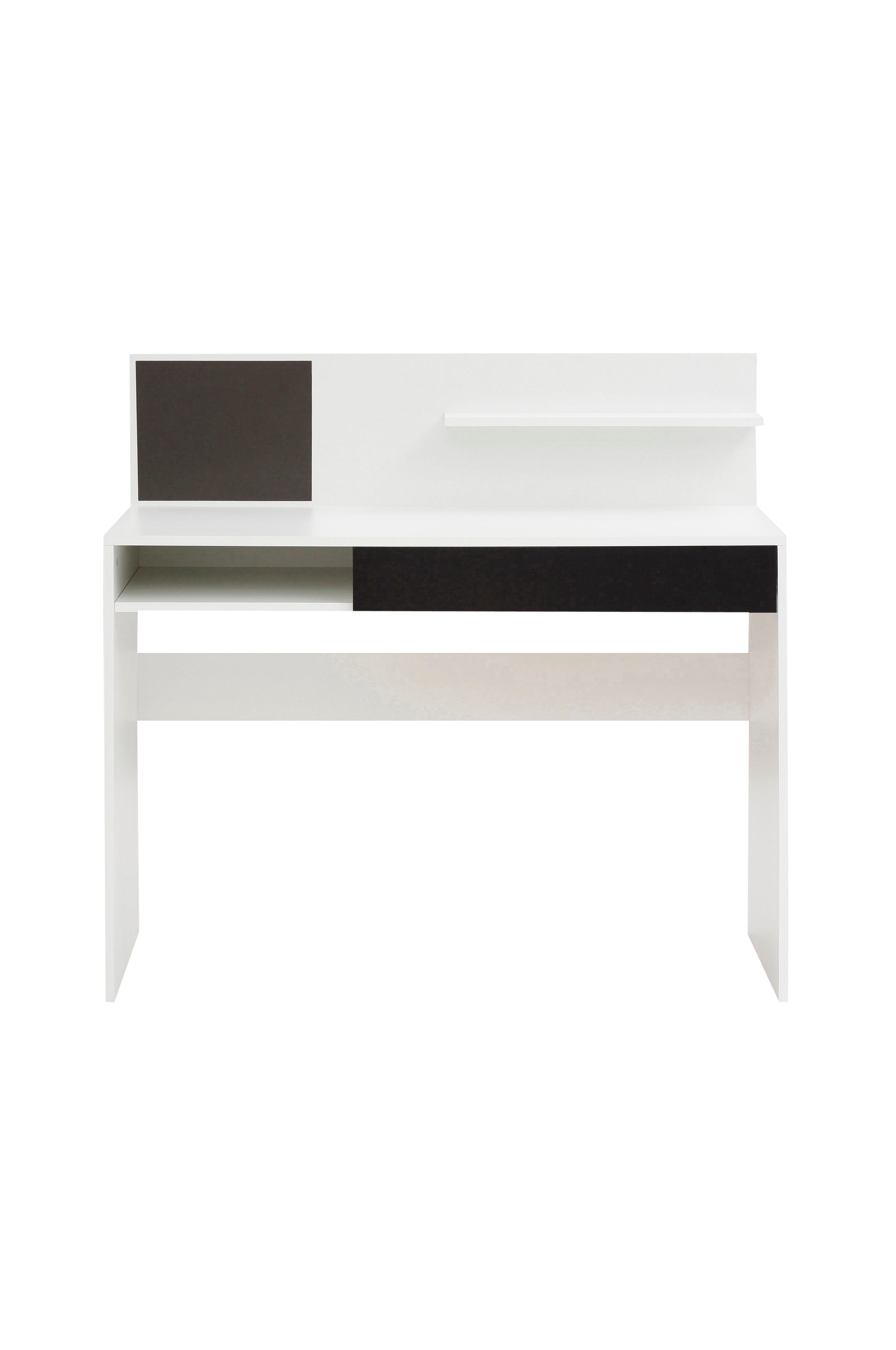 Magnet-kirjoituspöytä, valkoinen/musta melamiini, 110 x 50 x 103 cm.