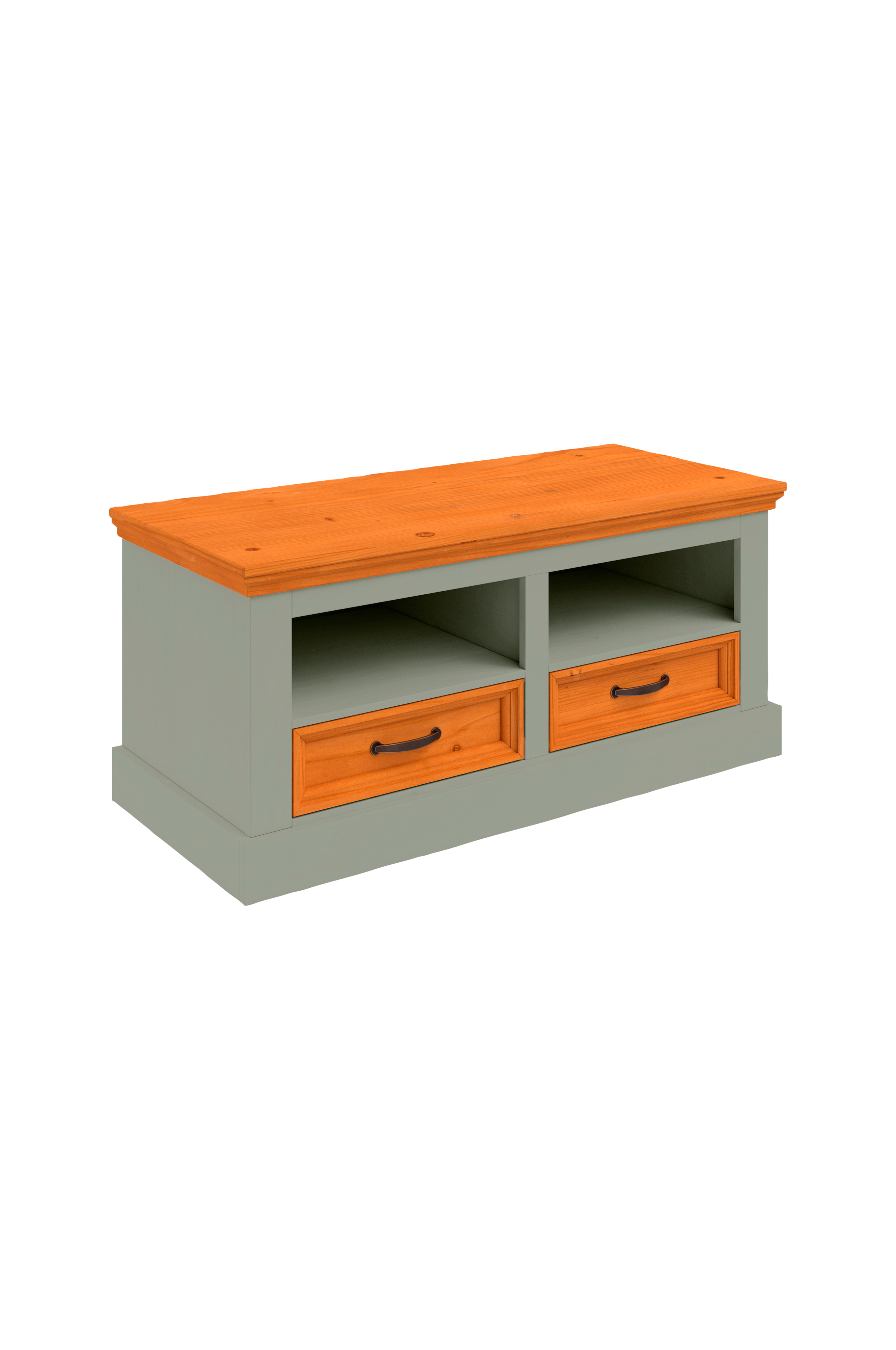 Tämä vankka mäntypenkki on varustettu kahdella tilavalla metallikahvaisella laatikolla, jotka tarjoavat sekä tyylikkyyttä että säilytystilaa. Laadukkaasta puusta valmistettu penkki tukee kestävän metsänhoidon käytäntöjä. Kokoonpantuina mittoina se sopii hyvin erilaisiin tiloihin. Penkki yhdistää toiminnallisuuden ja rustiikkisen charmin, mikä tekee siitä käytännöllisen ja hyvän lisäyksen kotiisi. Penkki on helppohoitoinen ja se sopii vaivattomasti yhteen eri sisustustyylien kanssa.