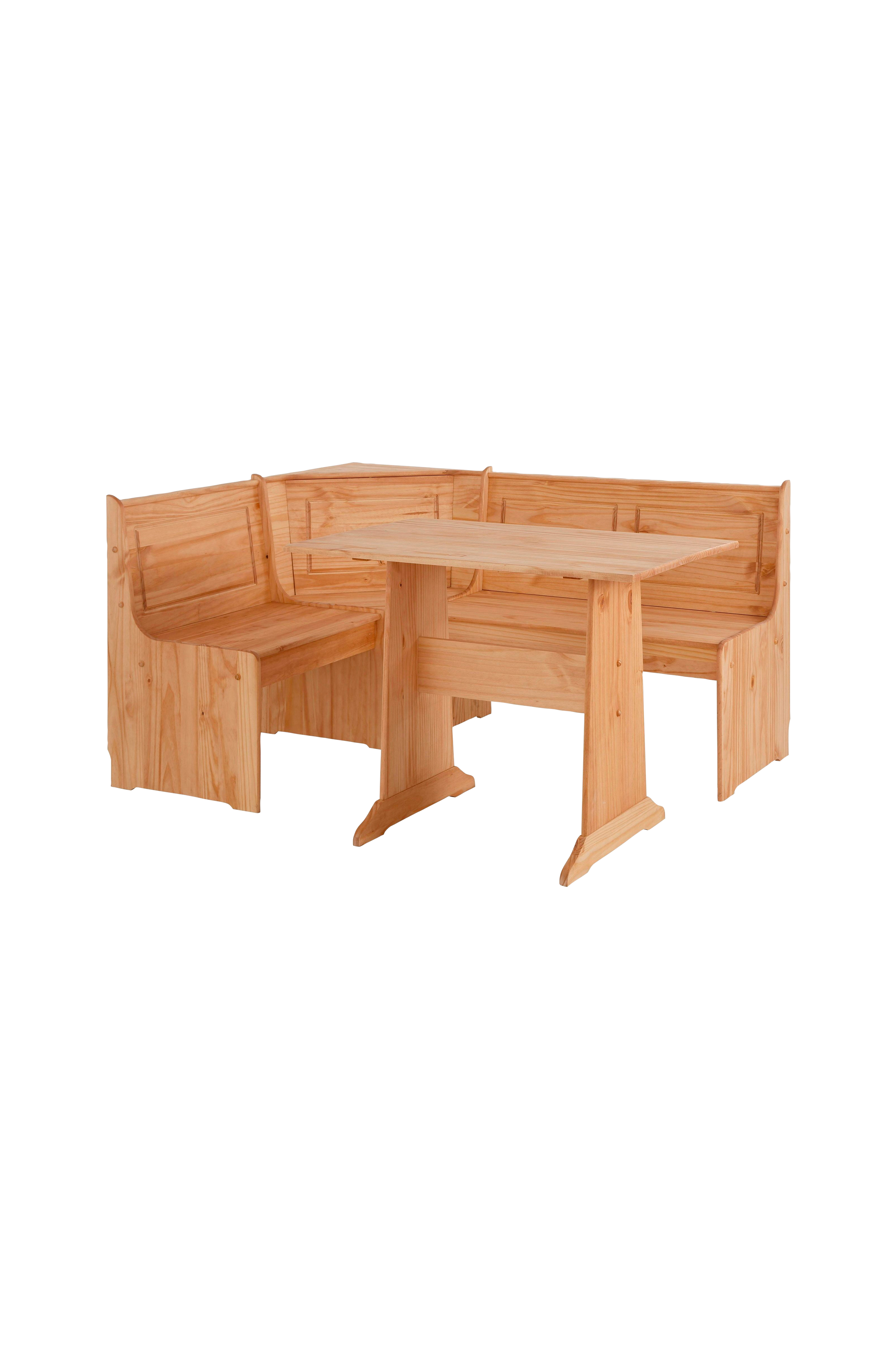 Kutsuu viihtyisään yhdessäoloon: 5-osainen ruokailusetti maalaistyyliin. Luonnollisen muotoilunsa ansiosta se voidaan integroida lukuisiin asuintyyleihin. Hillityt värit ja kauniit puun näköiset elementit muodostavat ilmeen. Ruokapöytäryhmä koostuu suorakulmaisesta pöydästä ja käytännöllisestä rintakulmapenkistä, jotka hyödyntävät ihanteellisesti huoneesi käytettävissä olevan tilan. Kulmapenkin istuimen alla on kaksi arkkua, joissa on hyödyllistä säilytystilaa. Pöytäryhmä on valmistettu fsc®-sertifioidusta massiivipuusta. Synnyttää viihtyisän tunnelman: maalaistyylinen ruokailuryhmä on saatavana eri väreissä.