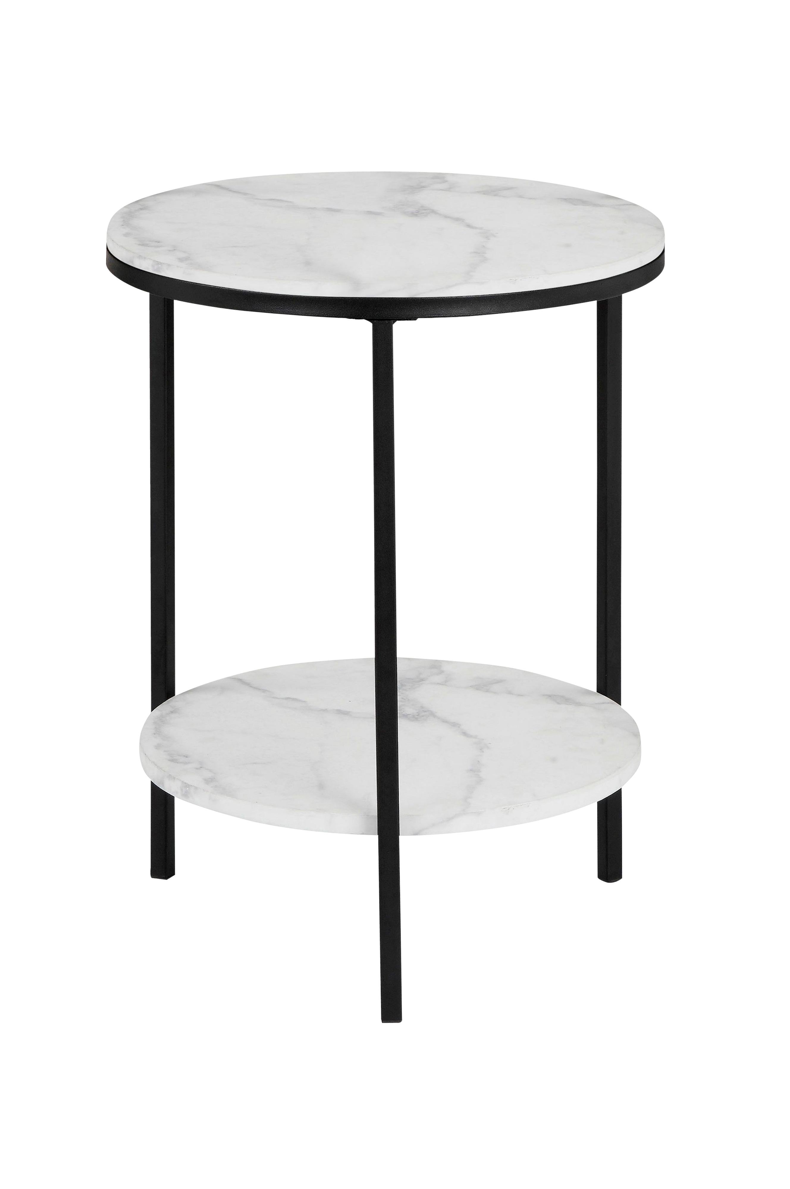 Mylo-sivupöytä MDF-levyä, jossa marmorikuvioinen kalvopinnoite ja mustat metallijalat, 40 x 40 x 55 cm.