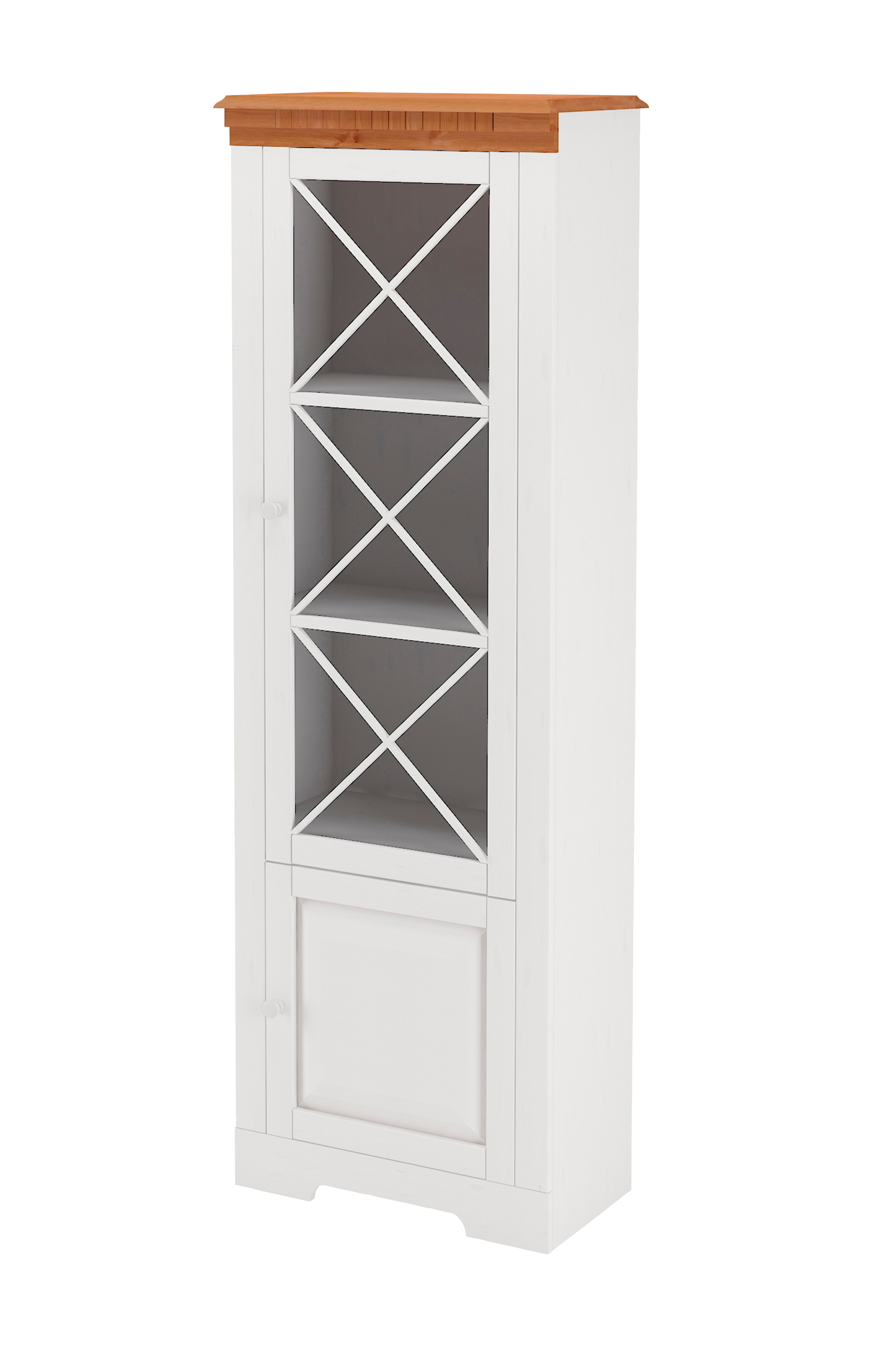 Tämä vitriini on todellinen katseenvangitsija, ja se parantaa jokaista huonetta. Vitriinin fsc-sertifioitu mäntypuu on vankkaa ja takaa huonekalun pitkän käyttöiän. Muotoilu on ajaton ja tarjoaa monia säilytysvaihtoehtoja houkutteleville huonekoristeille ja arkipäiväisille tavaroille. Suuret ja pienet aarteet voidaan säilyttää lasioven takana kahdella säädettävällä hyllyllä. Puisen oven takana oleva lokero ja integroidut laatikot, jotka kulkevat vakaiden metallikiskojen varassa, tarjoavat lisää säilytystilaa. Tämä vitriini on katseenvangitsija jokaisessa olohuoneessa tai ruokailutilassa.