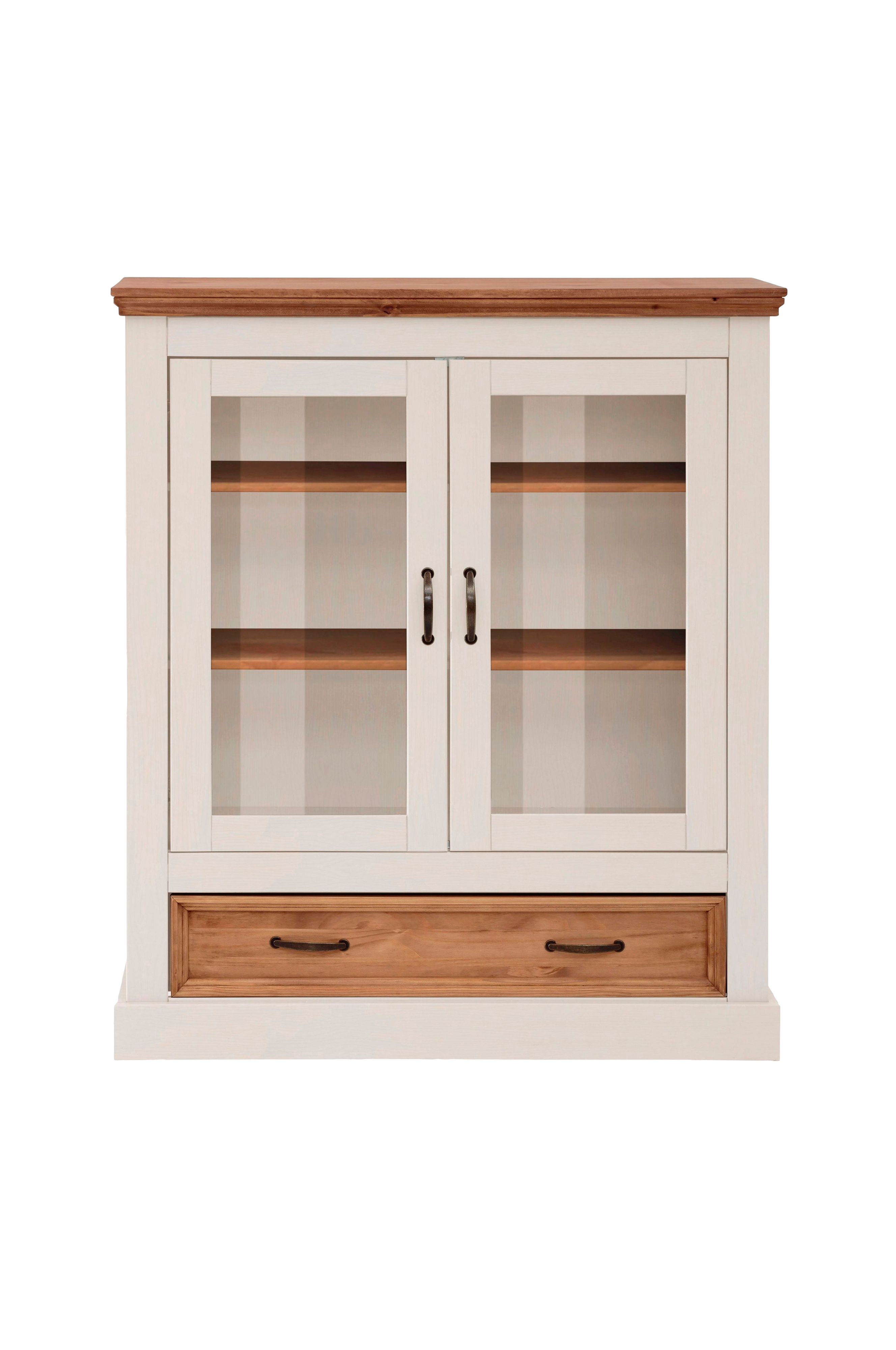 Tyylikäs sisustus ja laadukas puuhuonekalu - tämä vitriini tarjoaa molempia. Laatikot voidaan vetää kokonaan ulos ja ne tarjoavat sinulle lisää säilytysmahdollisuuksia. Hyllyjä voidaan käyttää vaihtelevasti. Voit siis itse määrittää yksittäisten lokeroiden korkeuden. Pinnalla oleva vaha antaa silkkisen kiillon. Puu pysyy silti hengittävänä. Rautaiset kahvat ovat kestäviä ja lisäävät tyyliä. Suurin kantavuus on noin 50 kiloa.