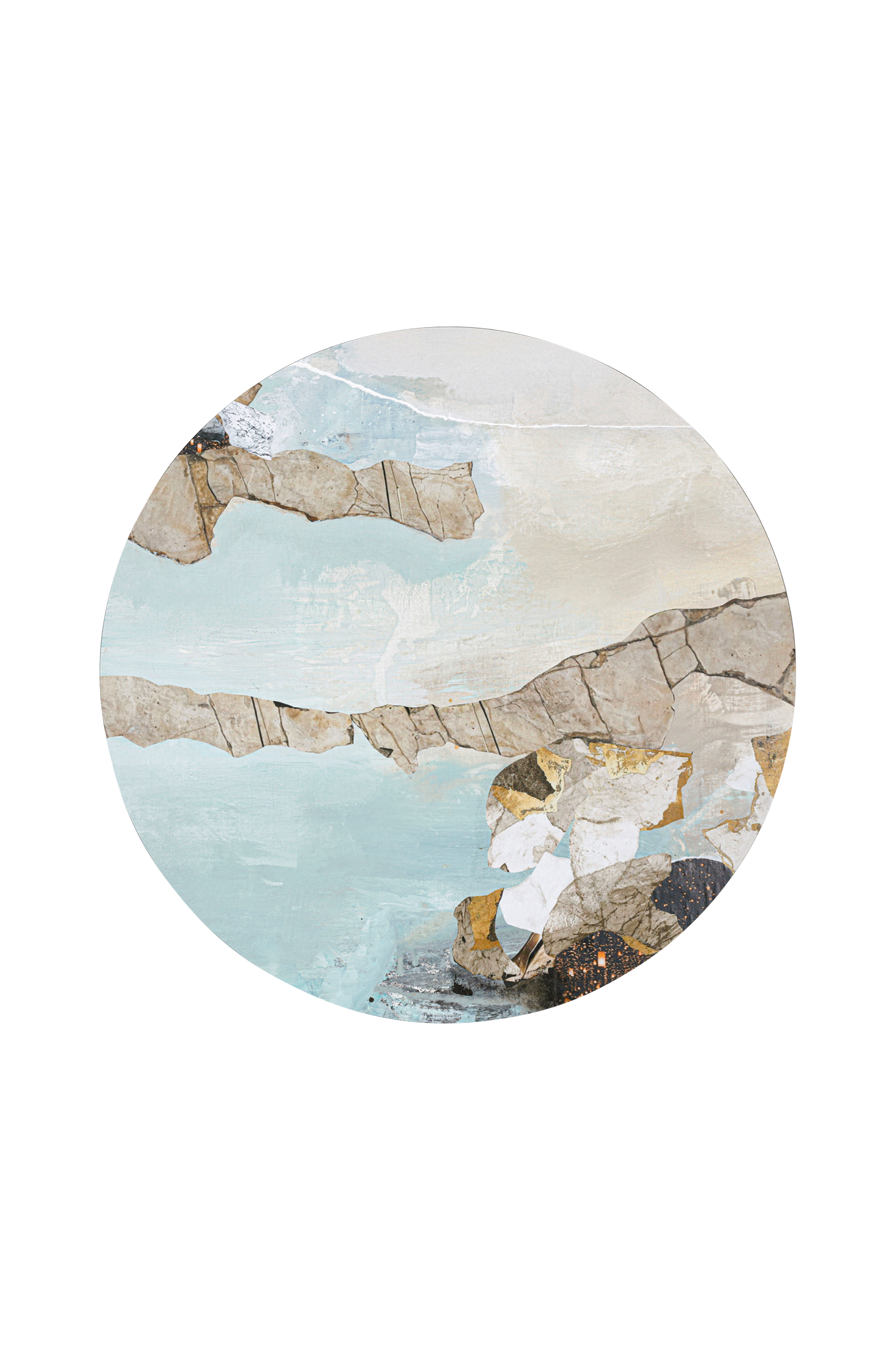 Malerifabrikken taulu. Painettu pyöreälle MDF-levylle. Seinälle ripustettuna levyn profiili saa aikaan vaikutelman, että taulun etuosa "leijuu" noin 0,5 cm irrallaan seinästä.