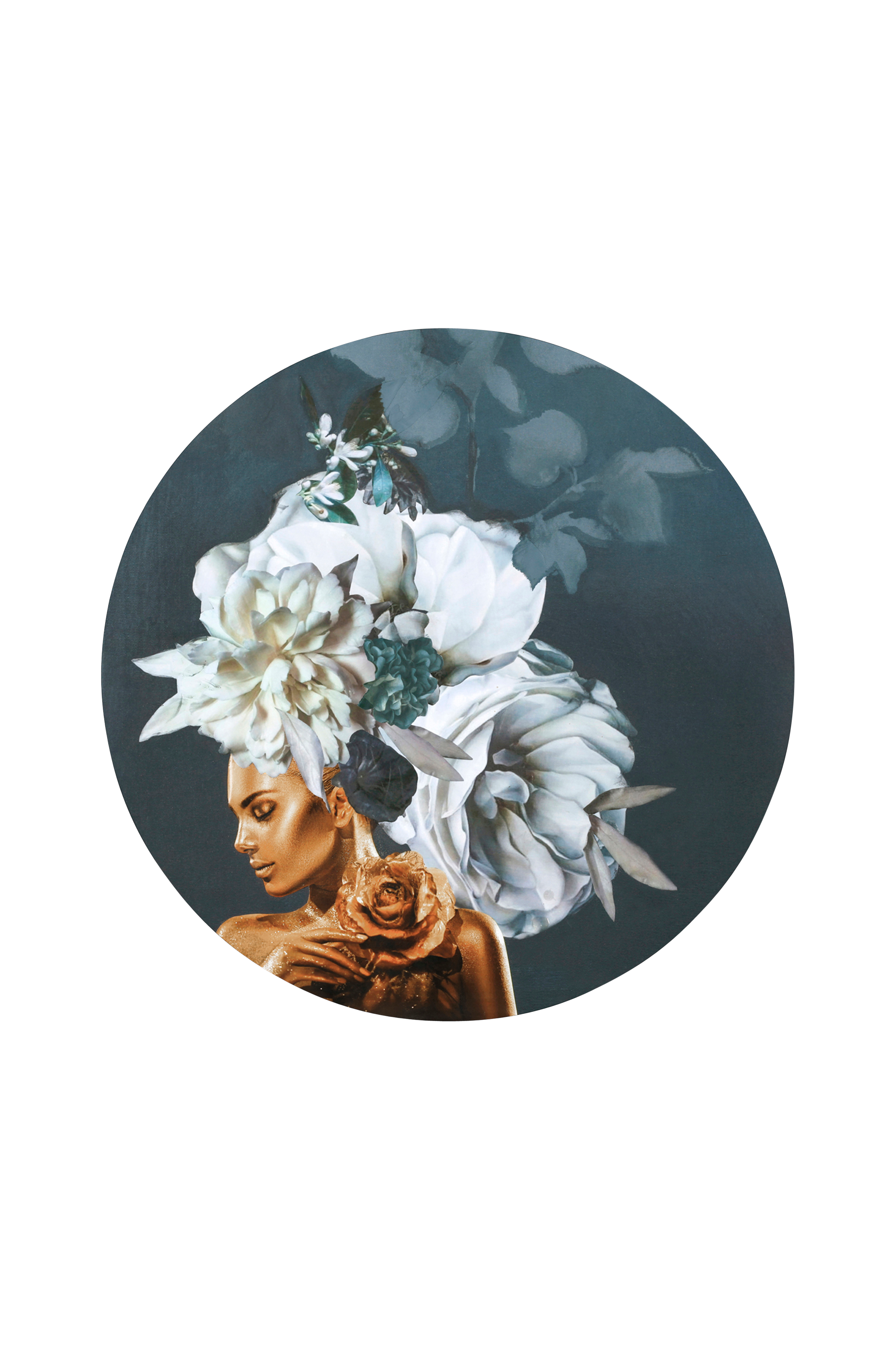 Malerifabrikken taulu. Painettu pyöreälle MDF-levylle. Seinälle ripustettuna levyn profiili saa aikaan vaikutelman, että taulun etuosa "leijuu" noin 0,5 cm irrallaan seinästä.