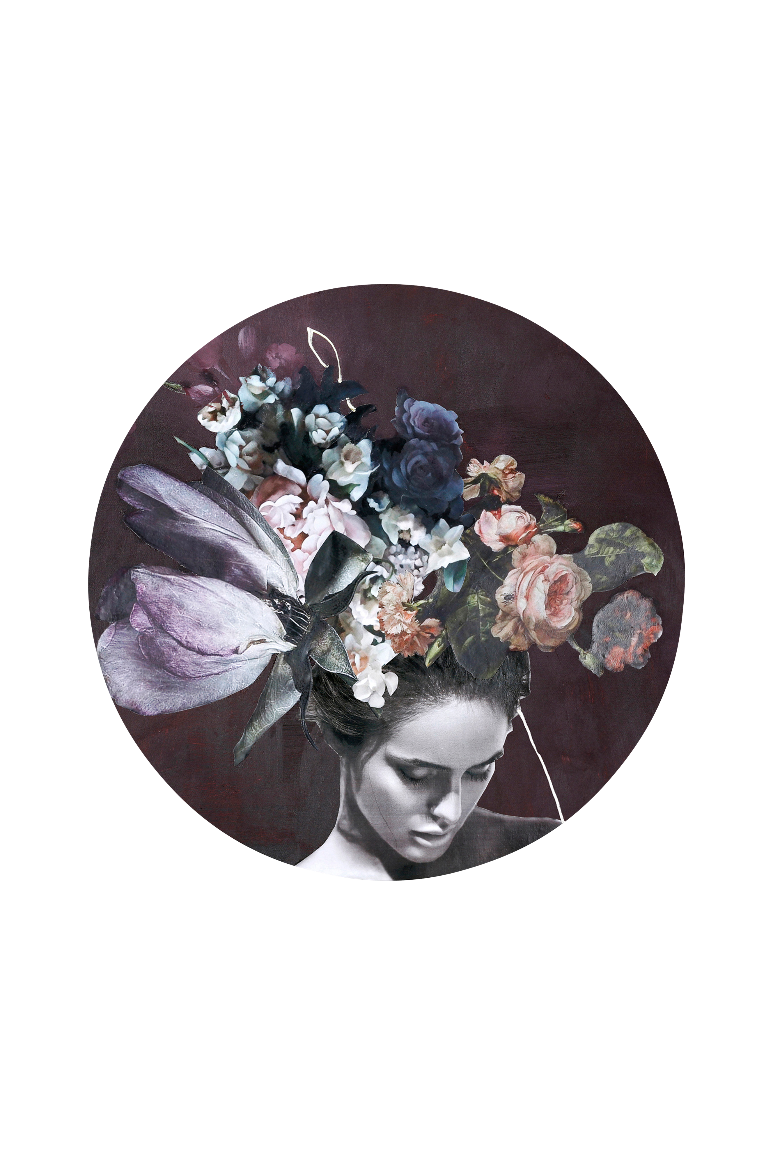 Malerifabrikken Haute Couture 5 -taulu. Painettu pyöreälle MDF-levylle. Seinälle ripustettuna levyn profiili saa aikaan vaikutelman, että taulun etuosa "leijuu" noin 0,5 cm irrallaan seinästä.