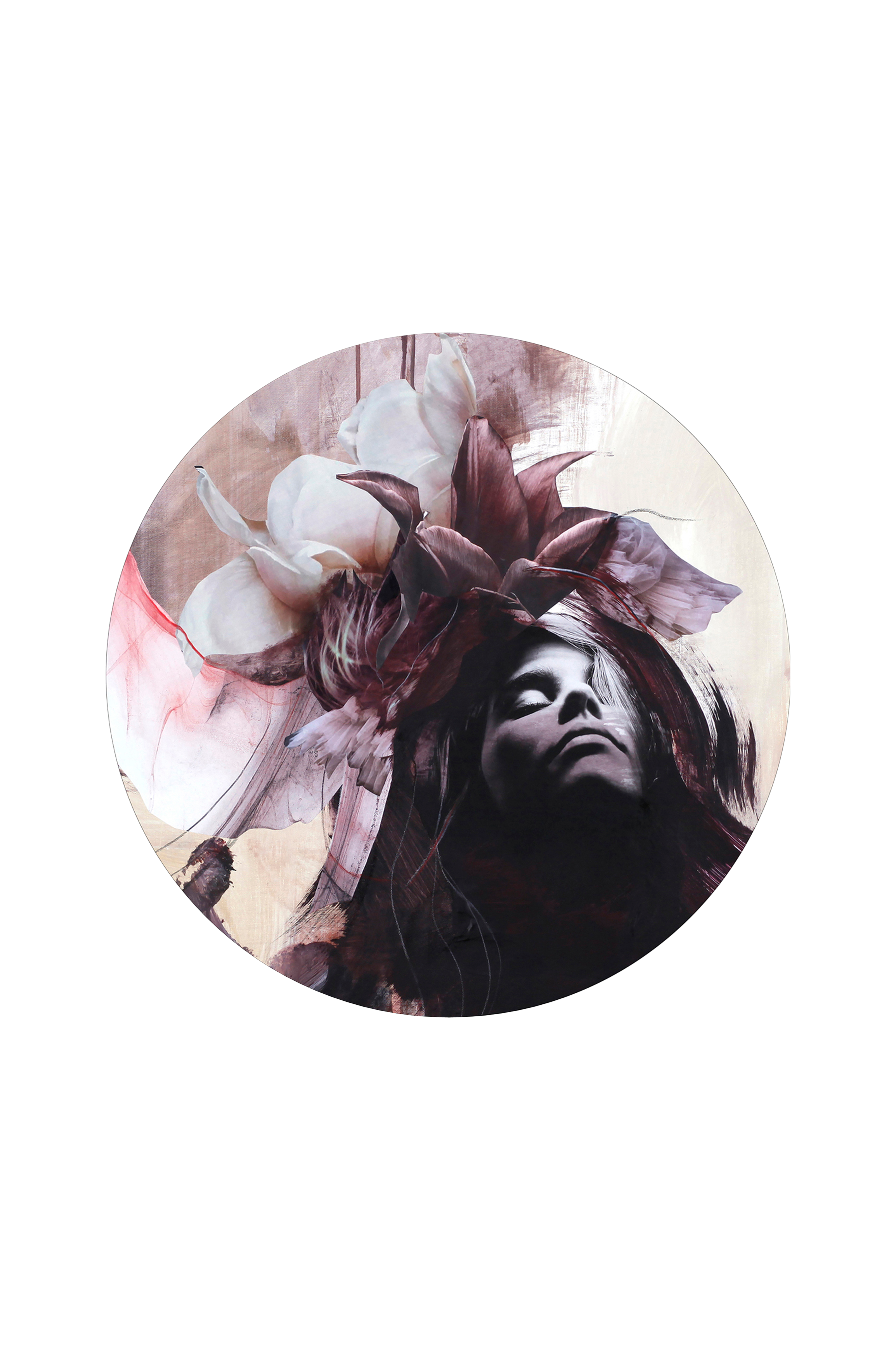 Malerifabrikken Imperfection red -taulu. Painettu pyöreälle MDF-levylle. Seinälle ripustettuna levyn profiili saa aikaan vaikutelman, että taulun etuosa "leijuu" noin 0,5 cm irrallaan seinästä.